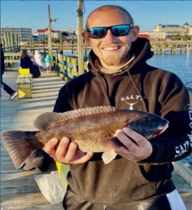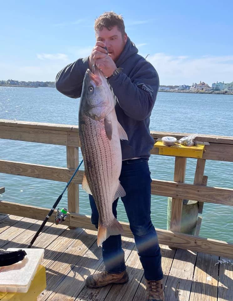 Fishing is picking up at the Oceanic Pier in downtown Ocean City over the past few days with some nice fish coming over the rail. Bob Haltmeier reports some keeper tautog, some throwback rockfish action and at least one jumbo rockfish. One lucky angler was happy to catch a very nice 42″ rockfish from the pier the other day, but wasn’t as happy to release it because it was over the slot. Remember, striped bass regulations for the coast are one fish per person from 28″ to less than 35″….everything smaller than 28″ or bigger than 35″ goes back.