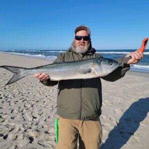 Joe Payne was fishing the Assateague surf when he landed this monster of a “chopper” bluefish.  The big blue was 36″ long.