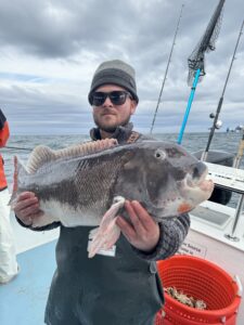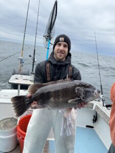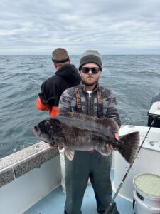 Captain Chase Eberle of Chasin’ Tides Charters had a great day of tog fishing for his crew today with some big fish that were released to as big as 14 pounds.