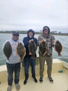 Captain Jason Mumford of Lucky Break charters had a short trip this morning, but he was able to have a really good catch of flounder for his crew on this morning’s trip.  Captain Jason put his guys on three throwback flounder and these five nice keepers.
