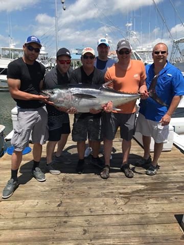 The crew of Rhonda’s Osprey with Captain Joe Drosey had a slower bite today than yesterday as well, but Captain Joe did have a big 105 pound bluefin. They also released another 100 pound bluefin and four yellowfin during the trip.