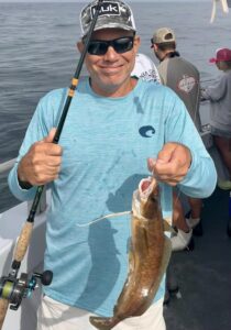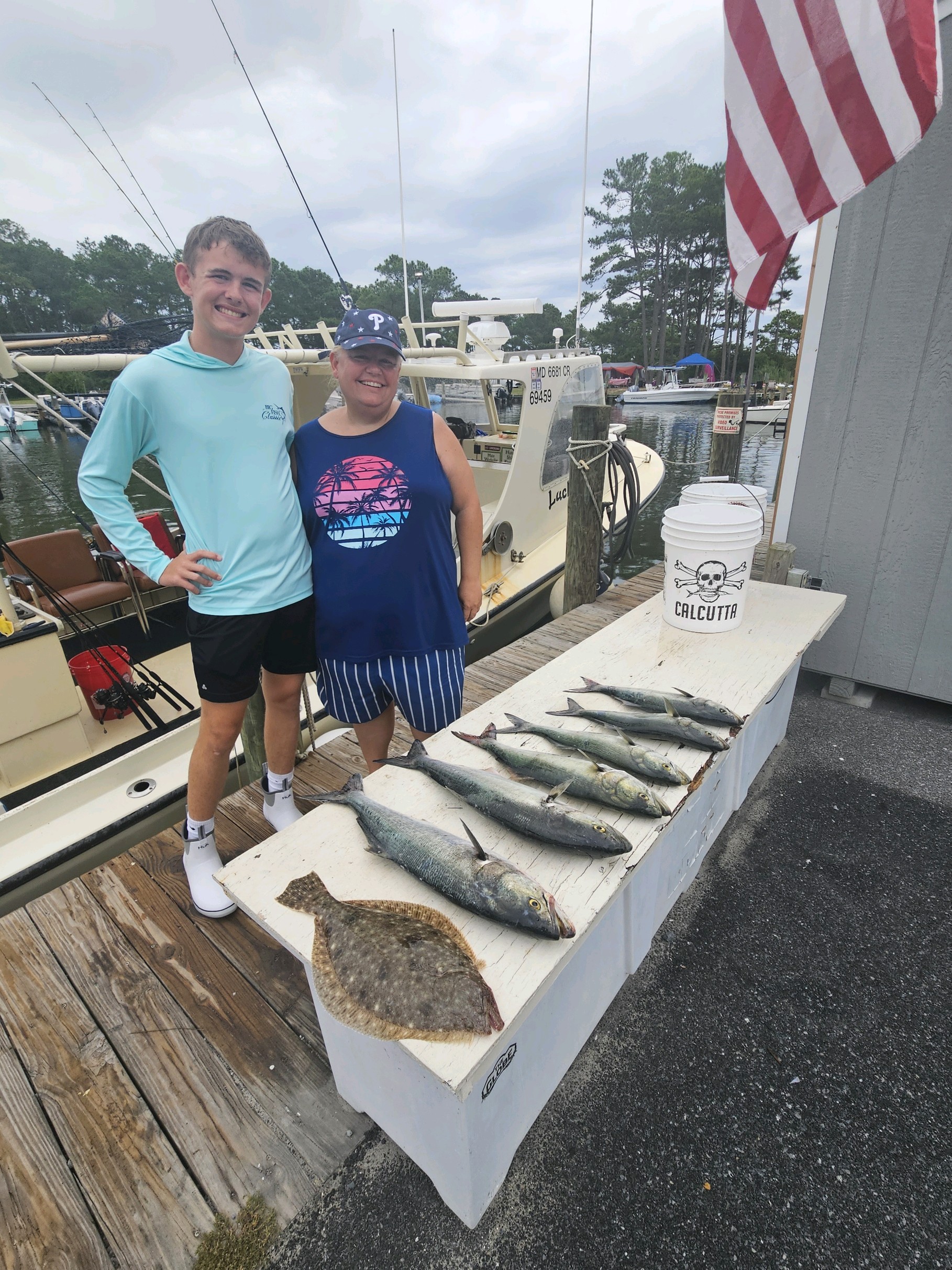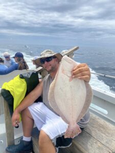 Away from the tournament Captain Jason Mumford of Lucky Break Charters had a nice day for his folks putting them on a keeper flounder and some bluefish action.