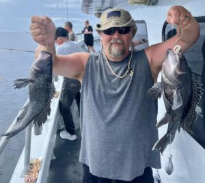 The sea bass bite began alright, even saw possible pool contenders right out of the gate. Joe would catch his winning fish mid-morning though.