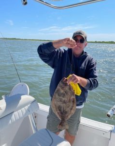 Mike Brockmeyer baited the Fish in OC Deadly Double in pink with a Gulp and live minnow and landed this very nice 22 1/2″ flounder behind Assateague Island today.