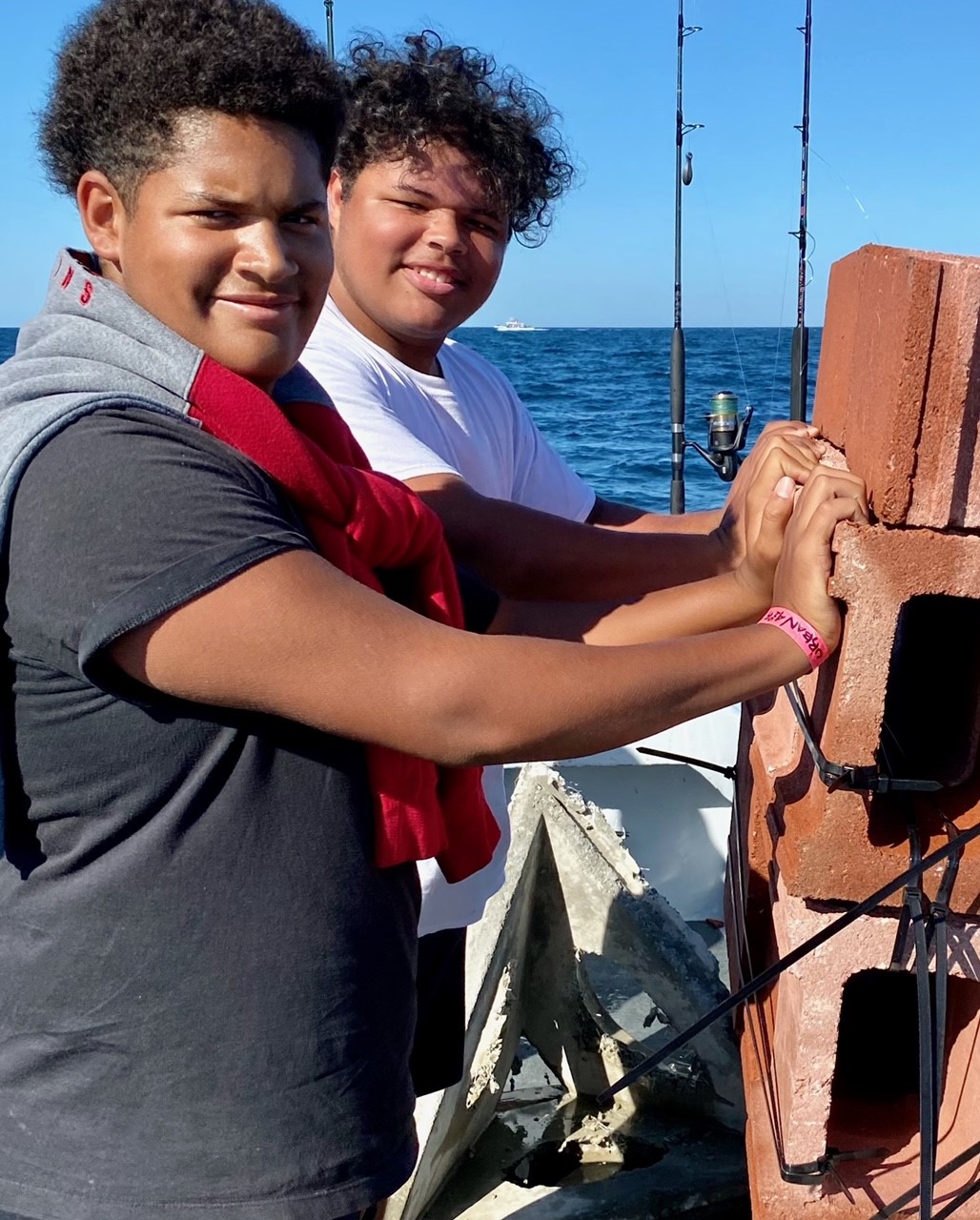 Daniel & Austin Curry dropped our blocks & pyramids this morning. All bullseyes atop already productive reef for sure. When the water (if) gets clear in August I’ve got to take a day and film some reefs we’ve built.