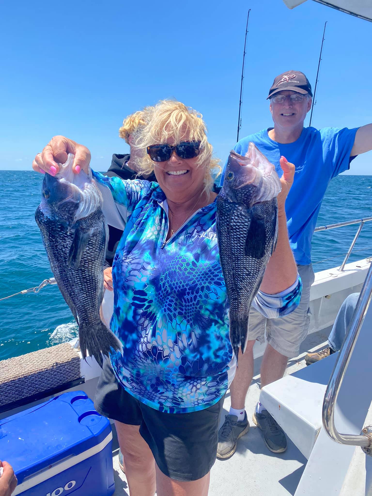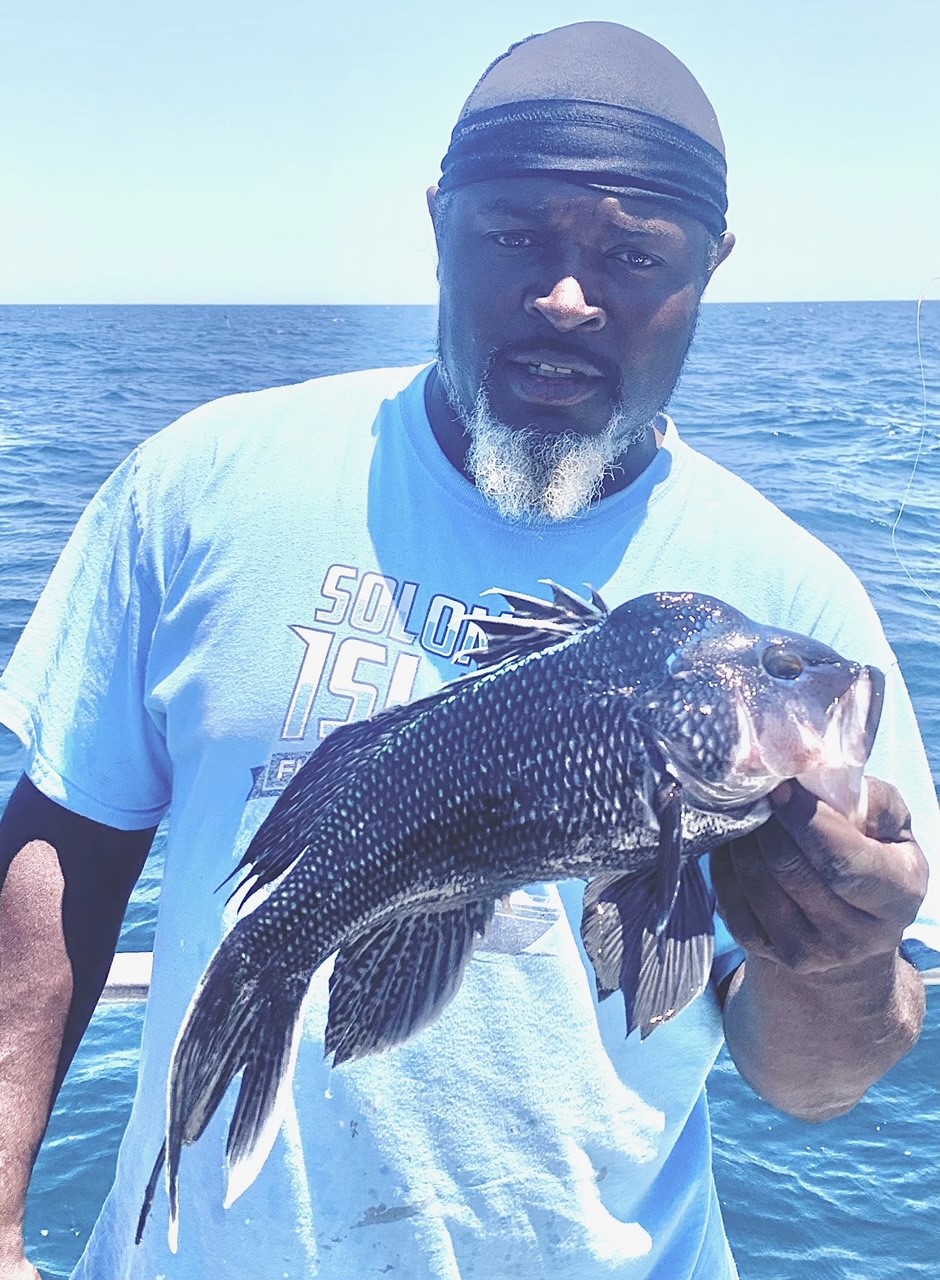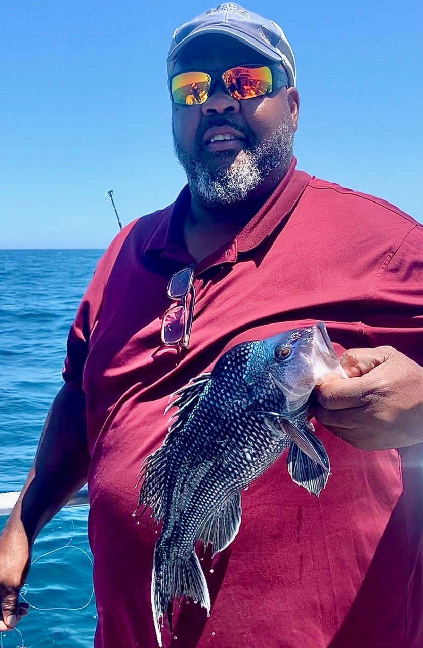 William Campbell of Silver Spring MD boxed the first limit today. Certainly a hot hand, might have been our only limit. Gotta play to win though! DJ Hackett won the money – despite several larger sea bass without question.