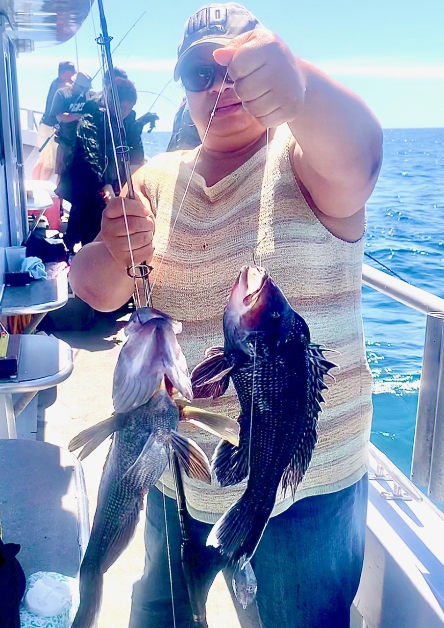 Ryan Cowder, Jason PPylypczuk and Kalee Jones weeded through some throwbacks, but managed a nice haul of sea bass from the Great Eastern Reef.