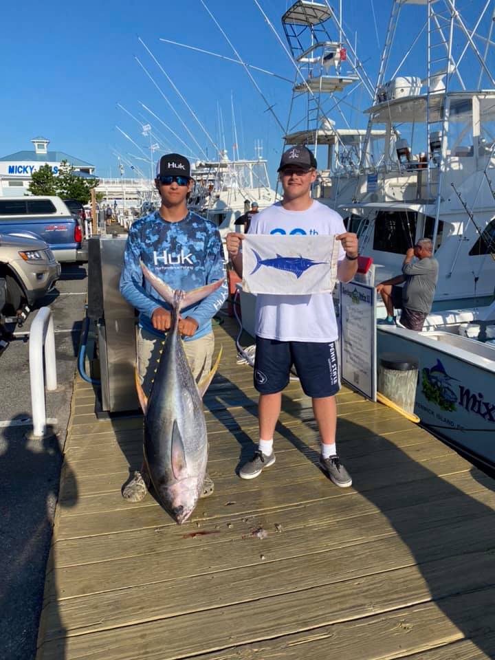 The crew of the Spring Mix II with Captain Chris Watkowski and mate Jacob Bialk had a nice day with a couple of yellowfin tuna today and yesterday they caught the first blue marlin that I’ve heard of this season.