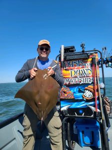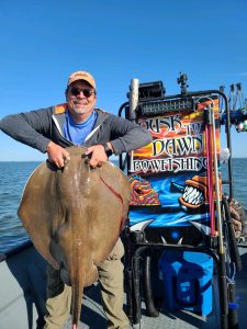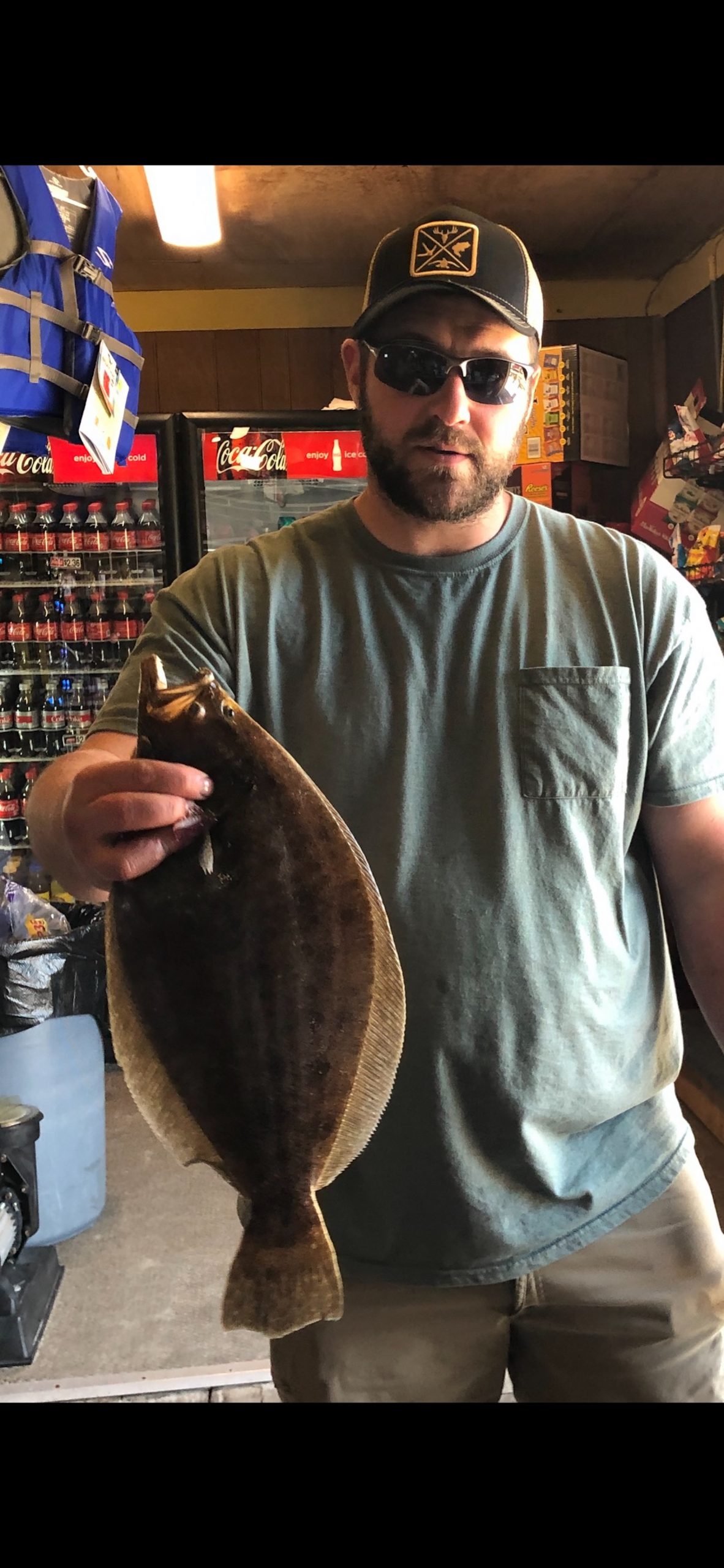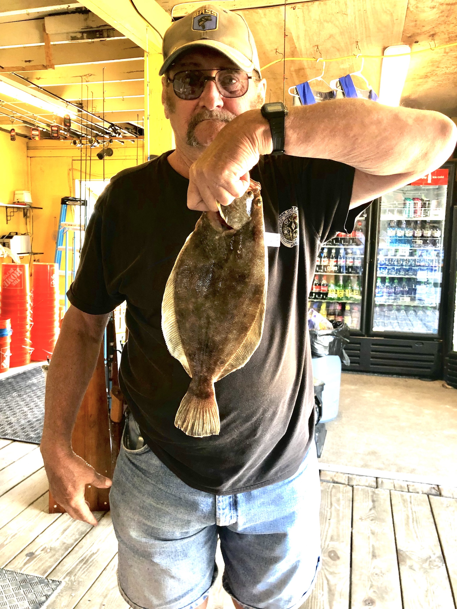 Andrew from Elkton, MD had a nice 18 1/2″ flounder caught on a white gulp from the Oceanic Pier. Gary from York, PA had a keeper too that was caught on a live minnow. Report from the Oceanic Pier is also that fish like rockfish, blues, trout and sea bass are being caught well during the incoming tide.