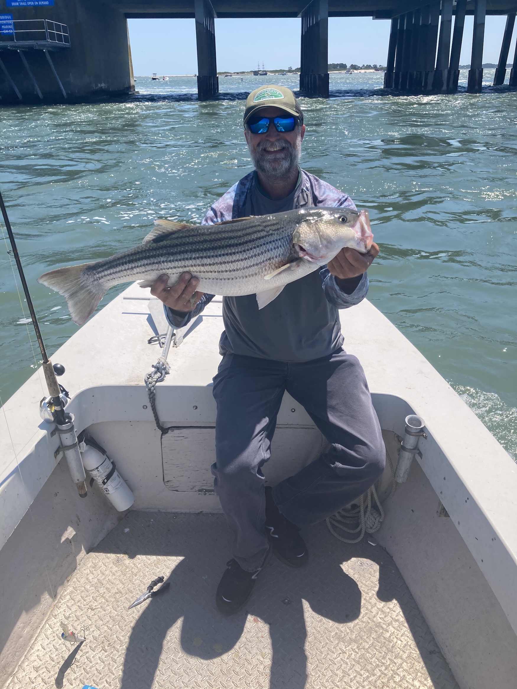 Big Bird Cropper and Shawn Flaherty had a great day dredging Stretch lures at the route 50 bridge. The guys had two keeper rockfish and four nice chopper bluefish.