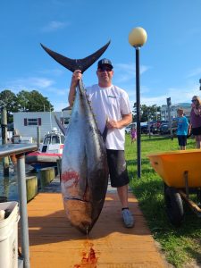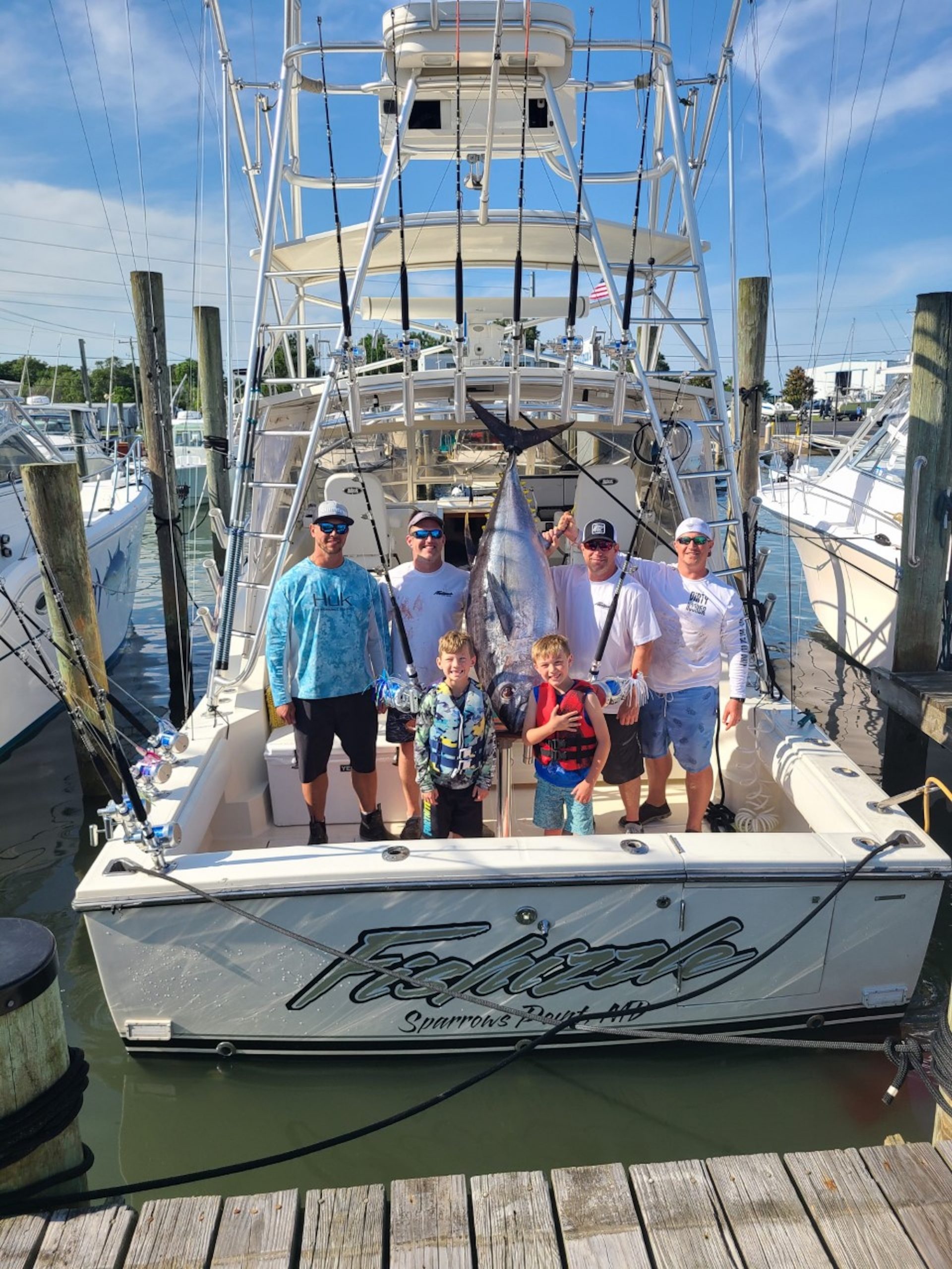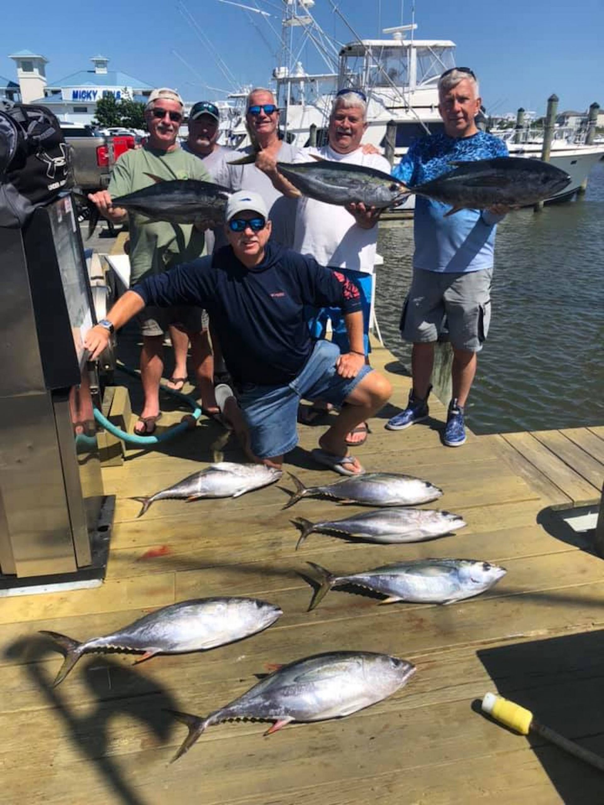 The crew of the Shorebilly had a nice day of trolling yesterday when they put some yellowfin tuna meat on the dock at the Ocean City Fishing Center.