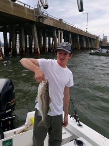 Captain Wayne Blanks of Bayside Guide Service had a good time with his anglers at the route 50 bridge today catching and releasing some schoolie rockfish.