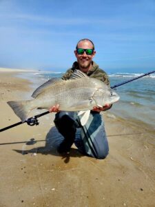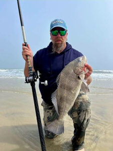 The black drum have shown up in pretty good numbers over the past day or so and David Moore has found a good bite. Yesterday David caught four fish and today he and Morgan Mericle had another six.