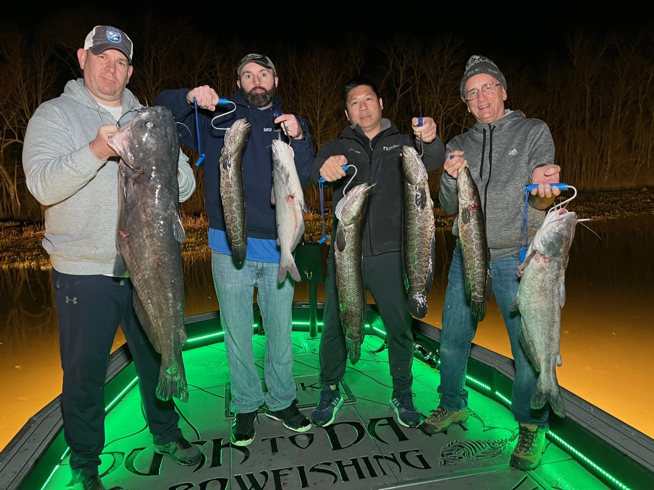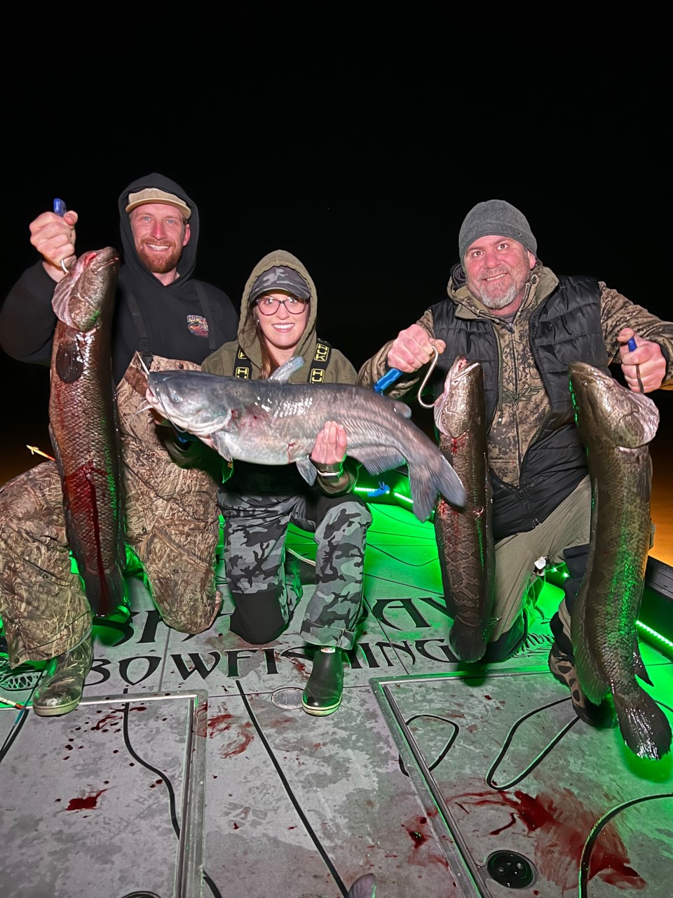 Captain Marc Spagnola of Dusk to Dawn Bowfishing has gotten back on the river and found great shooting for his crew. Captain Marc has put his folks on good snakehead action with some big blue catfish in the mix as well.