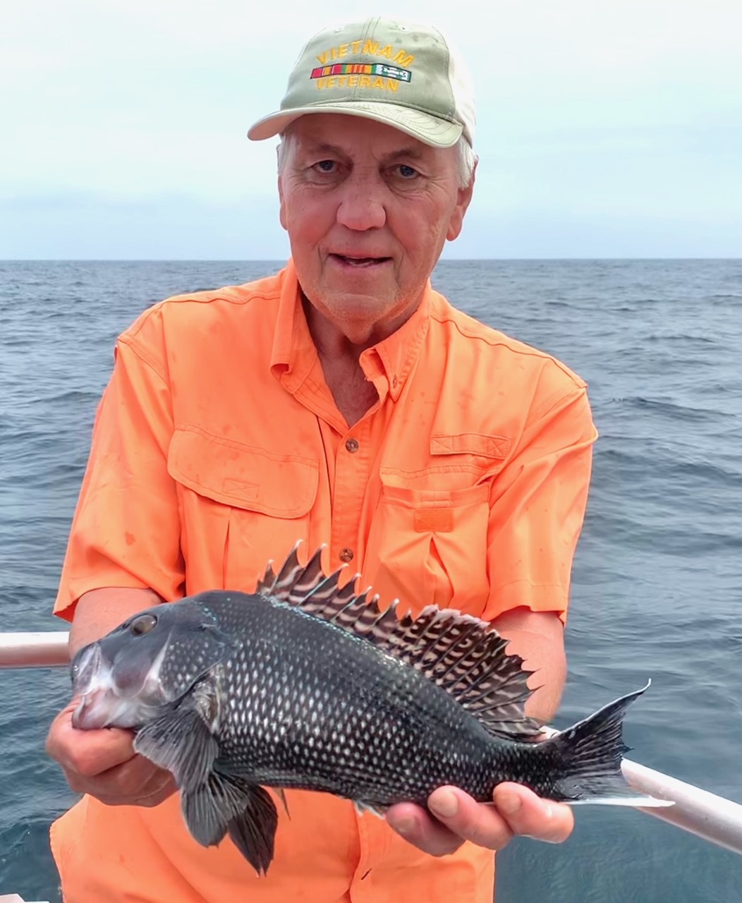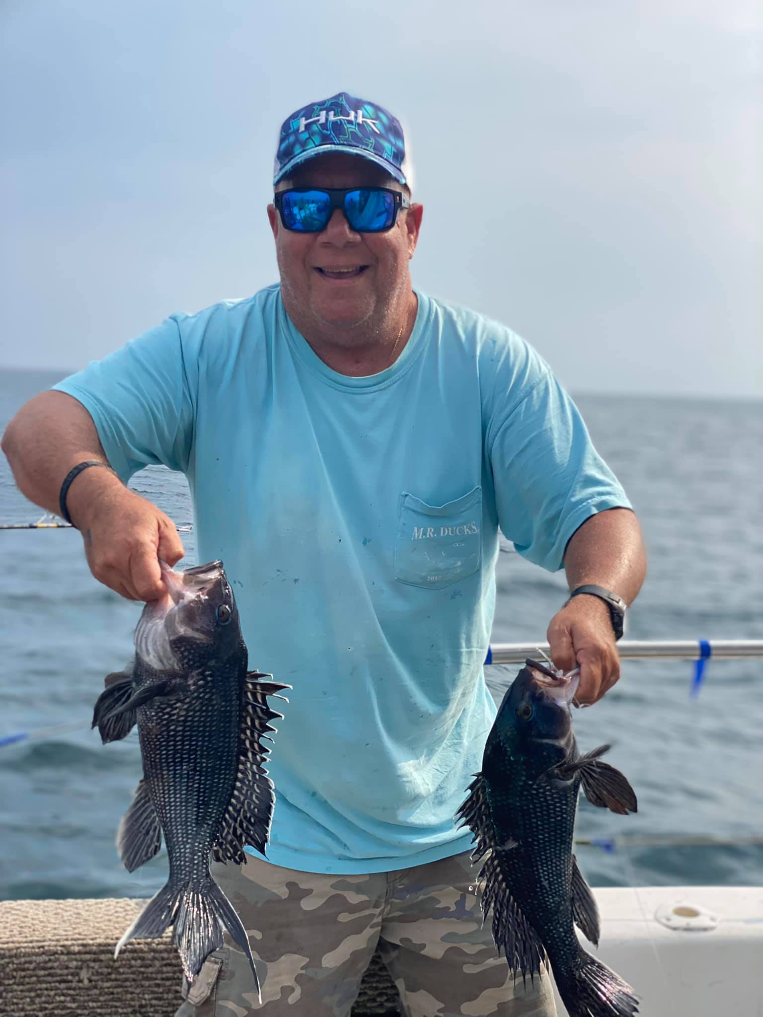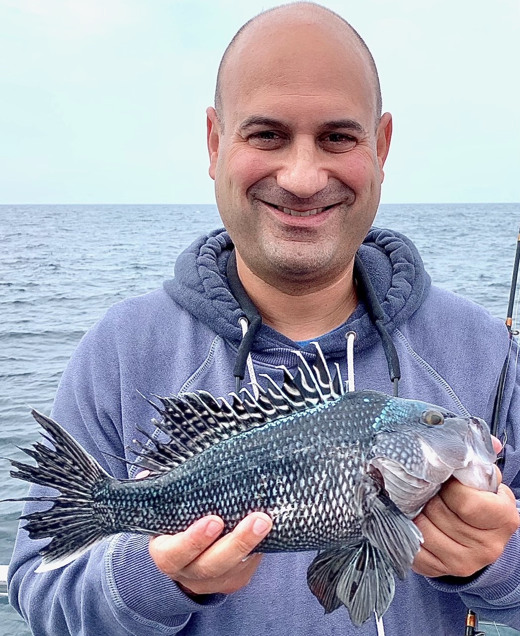 Captain Chris Mizurak of the Angler had good fishing for sea bass on today’s trip to ocean structure.