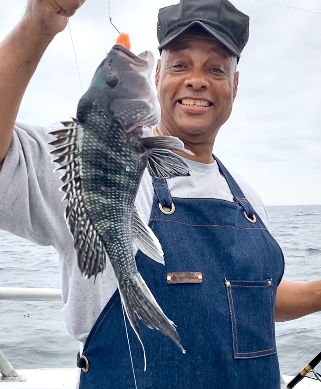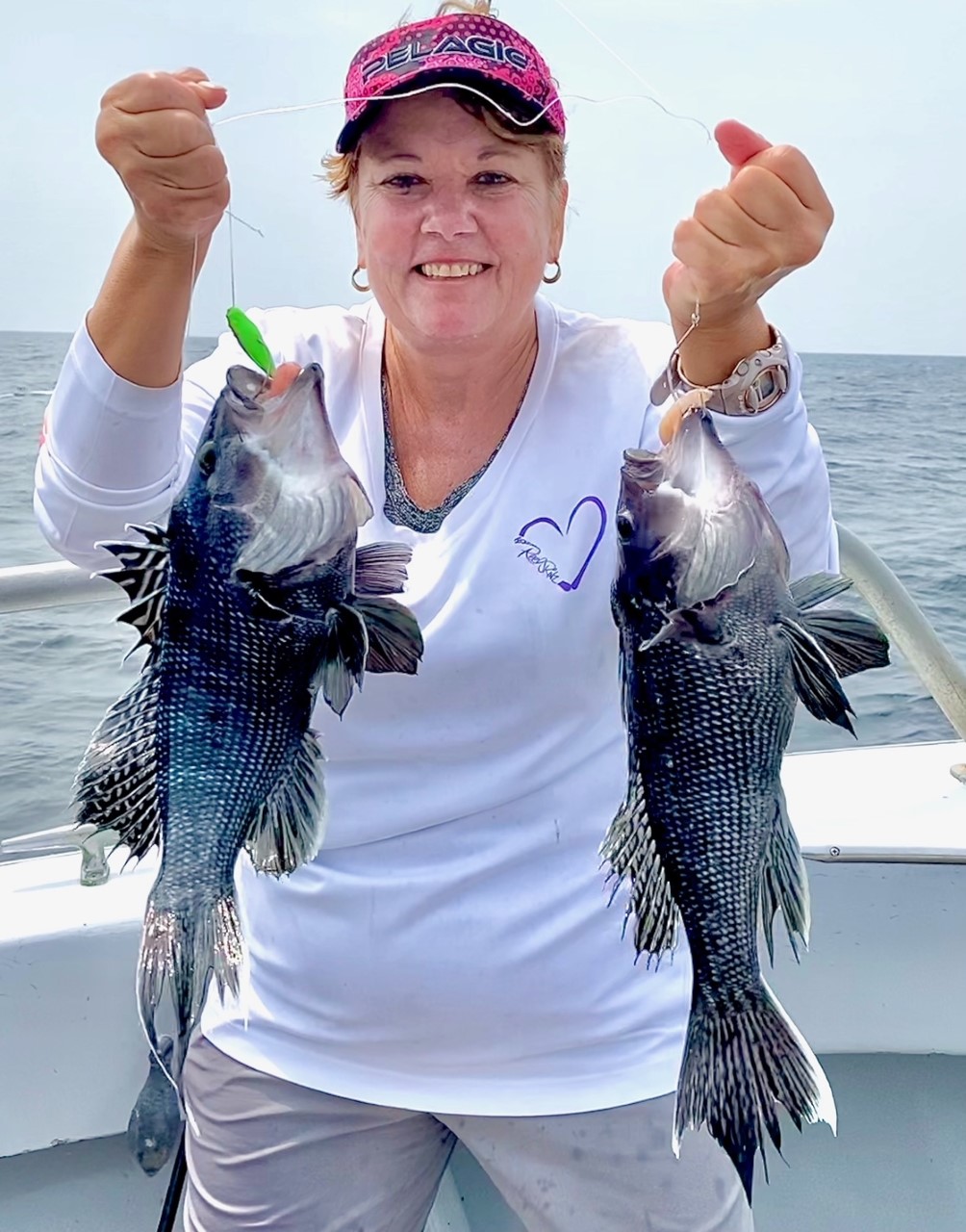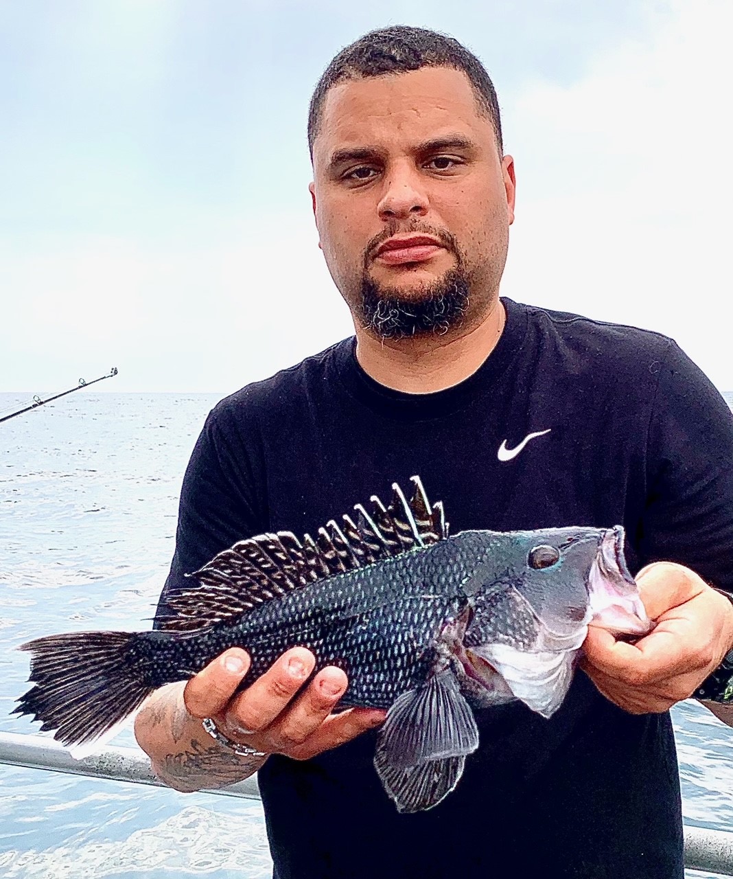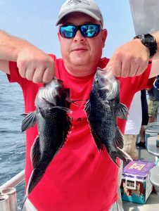 Captain Chris Mizurak of the Angler had good fishing for sea bass on today’s trip to ocean structure.
