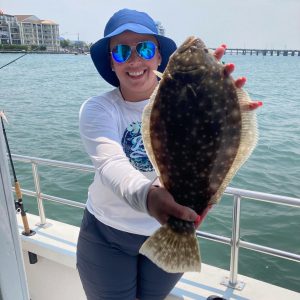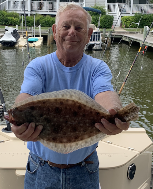 Dave Borrell from Pennsylvania caught this 17″ keeper flounder on a live minnow in the Thorofare.