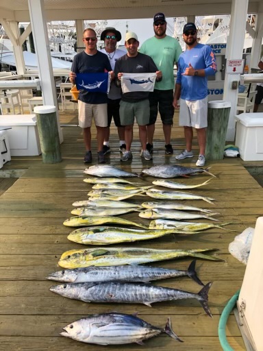 Captain Mike Burt and the crew of Pumpin’ Hard had a better day today prepping for the White Marlin Open when they boxed a some yellowfin and some mahi on the troll.