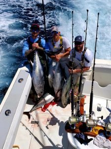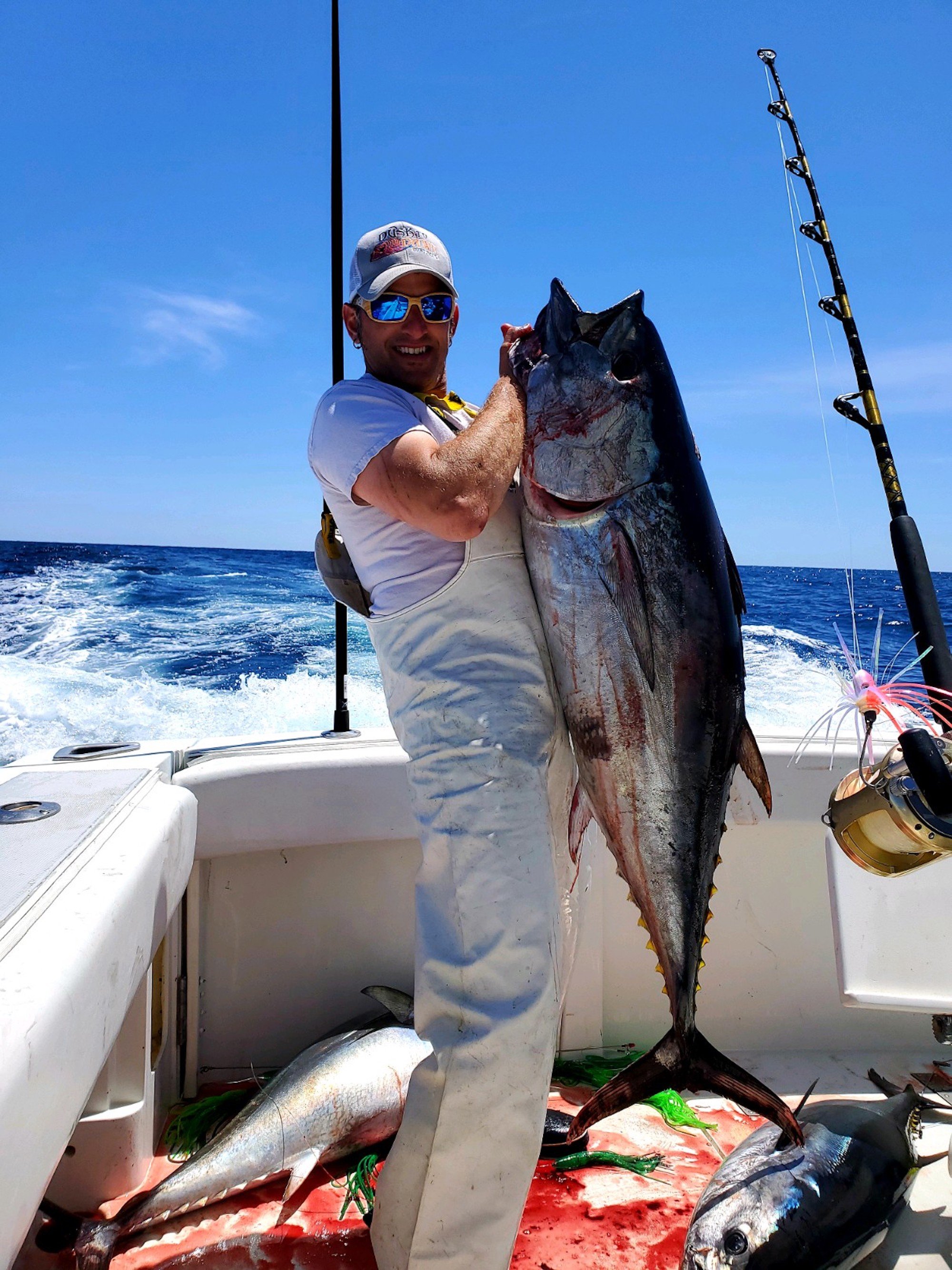 Captain Marc Spagnola of Dusk to Dawn Bowfishing joined in on the bluefin fun today as well catching a limit with Joseph Congialdi, Thomas Preston and Tony Congialdi. Their largest fish was a 50″er that weighed 80 pounds. More on Captain Marc later…..