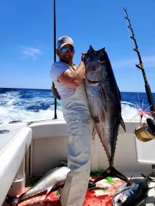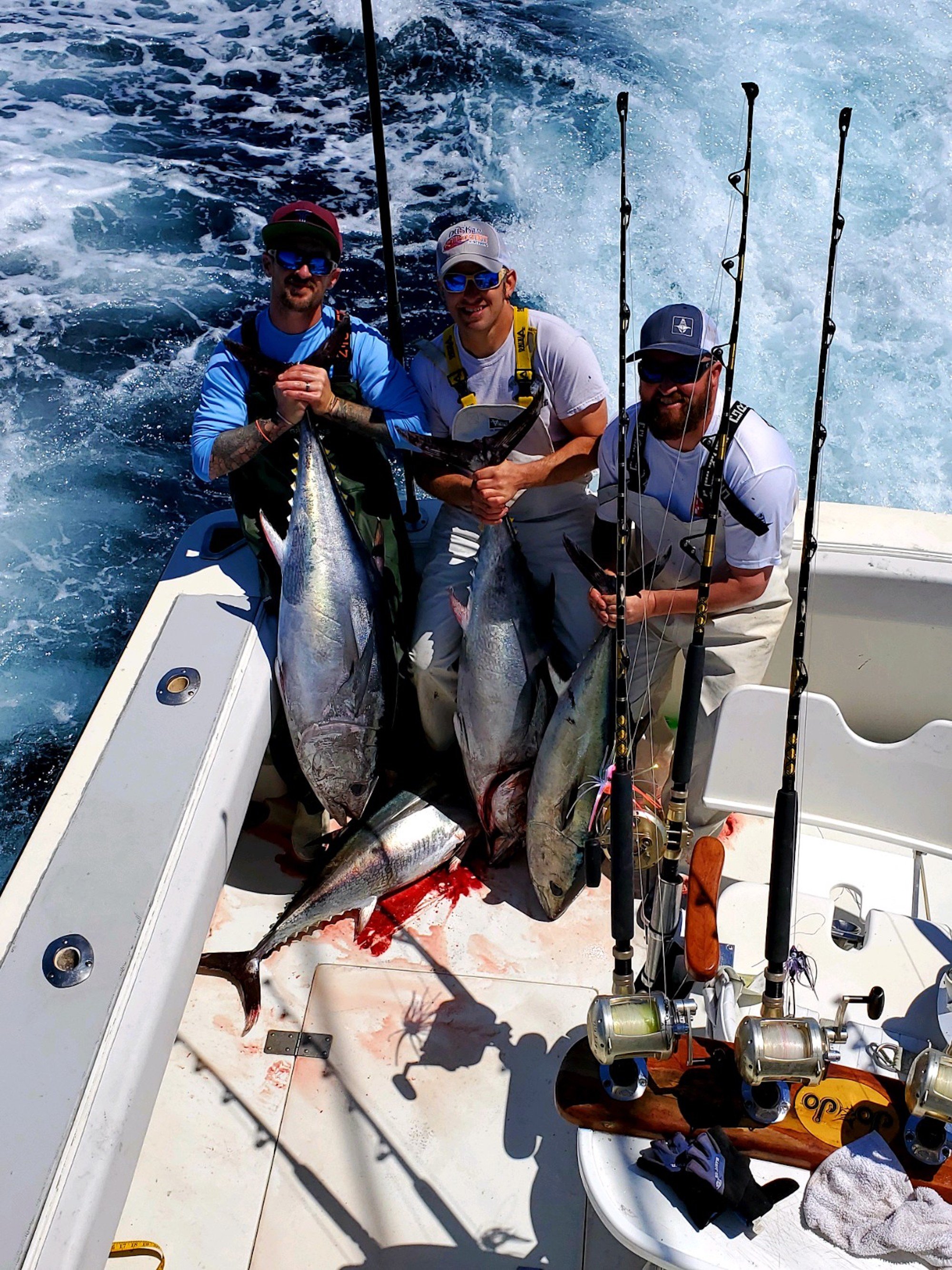 Captain Jeremy Blunt of the Wrecker had an insane day of offshore fishing today. Captain Jeremy and his anglers fished the Wilmington Canyon where they found good water and tons of bluefin tuna as shown on his lit up bottom machine. Wrecker had it’s limit of 4 bluefin tuna by 10:30 so they decided to do some deep dropping and had great luck there too putting several golden and blueline tilefish in the boat. Thanks to Dave Messick of Hooked on OC for the pic!