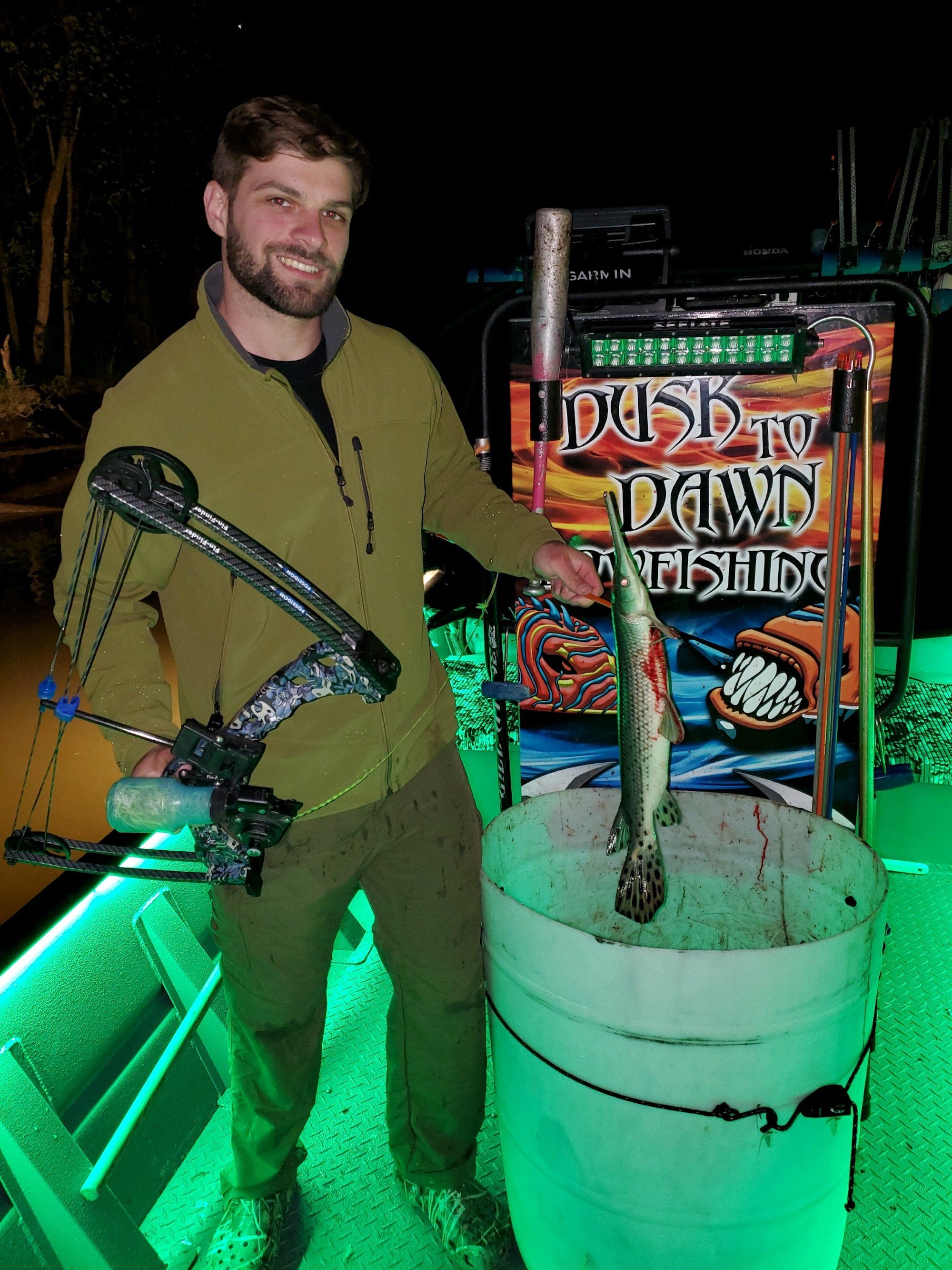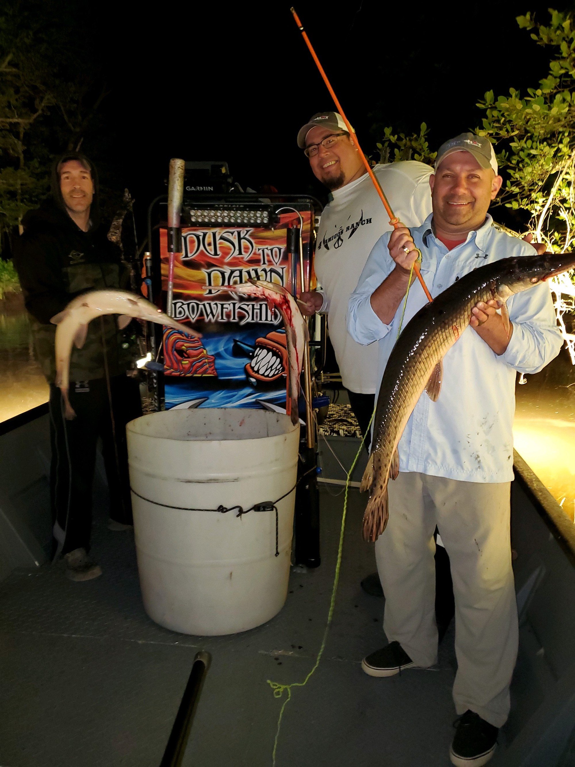 Right before he left to go offshore fishing today Captain Marc Spagnola of Dusk to Dawn Bowfishing had clients on board for another fun and successful night of shooting. Captain Marc put these guys on plenty of shots at gar and they hit on more than a few.