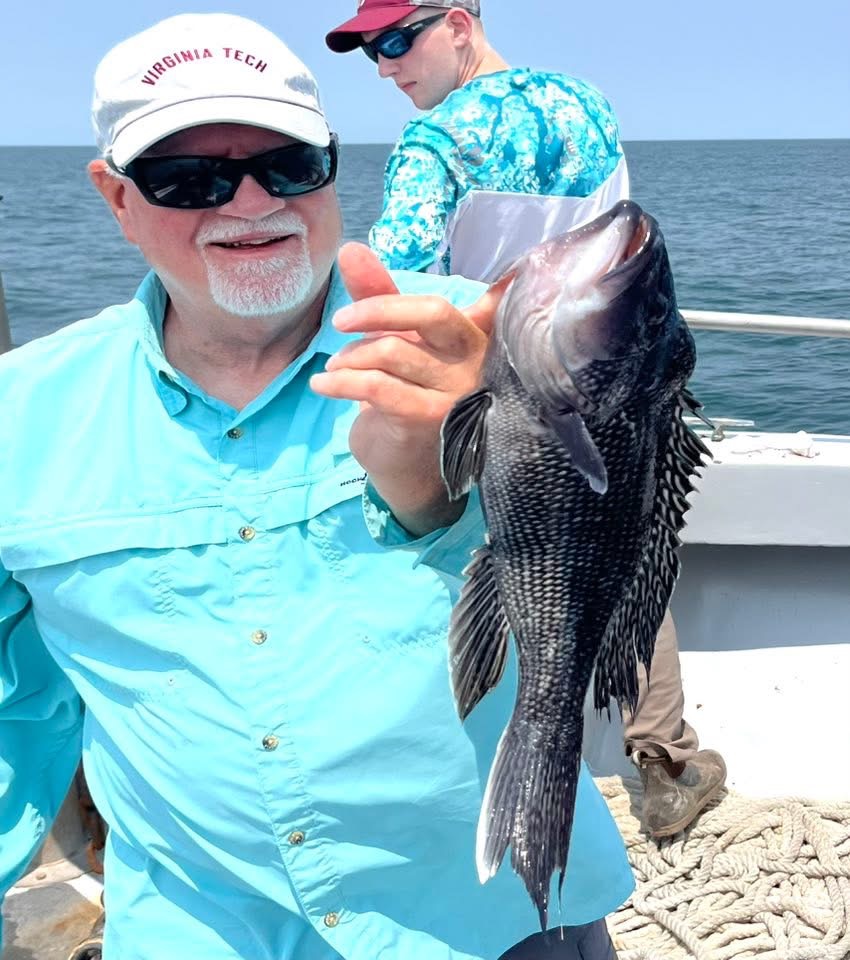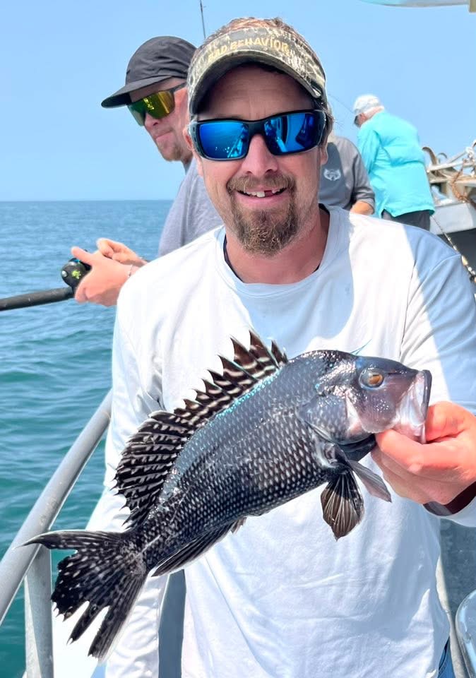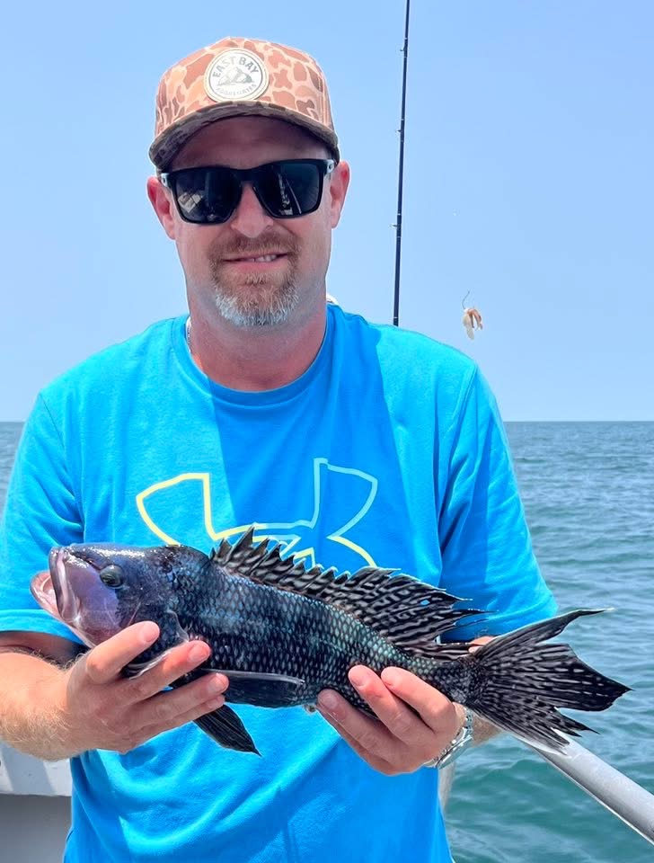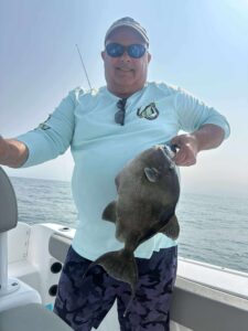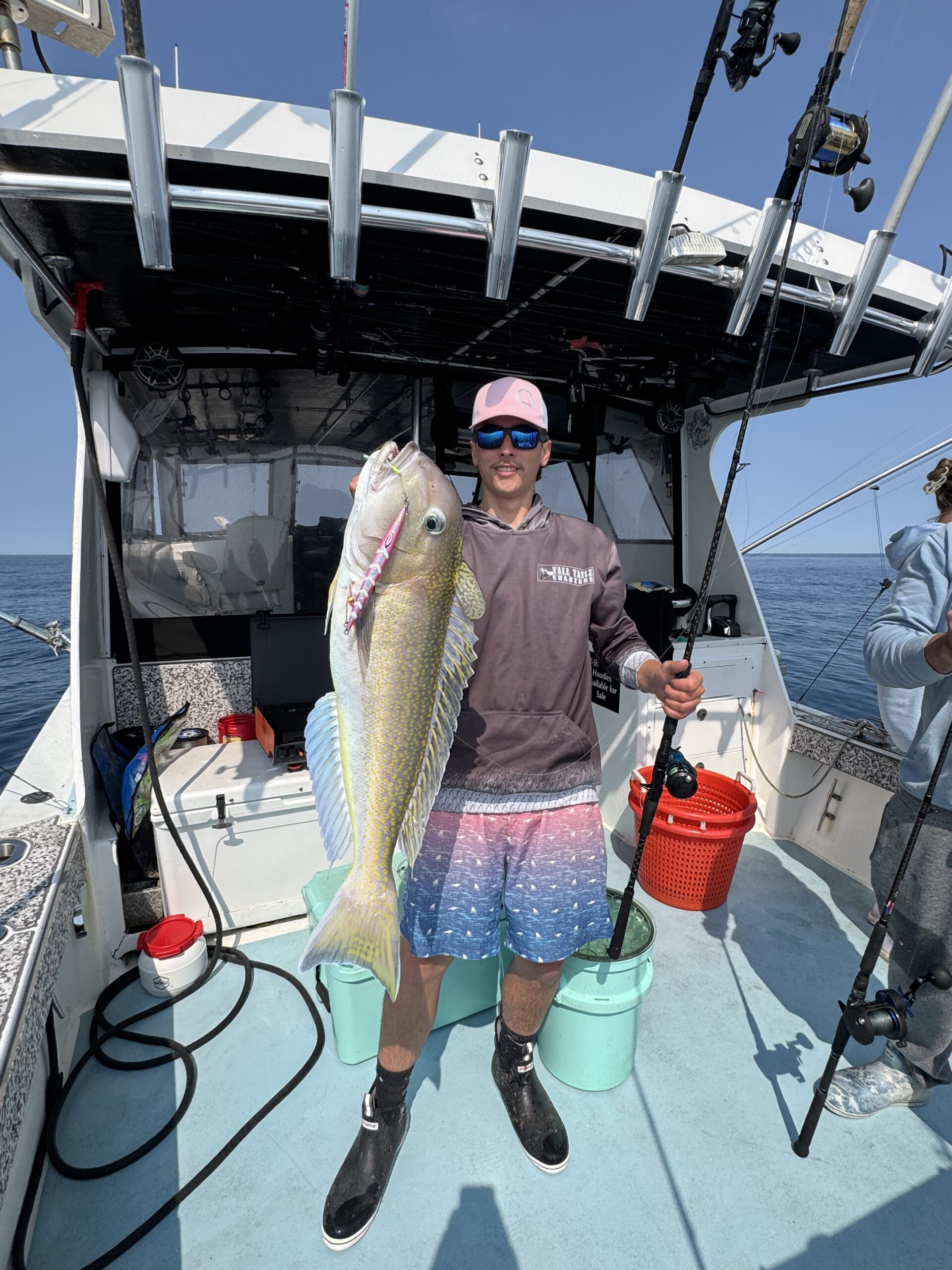 Captain Chase Eberle of Chasin’ Tides Charters had a nice day in the deep for his crew today putting them on a tuna, some black belly rosefish, some golden tilefish and some big sea bass.