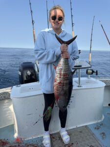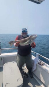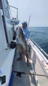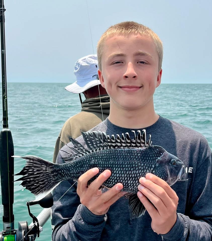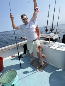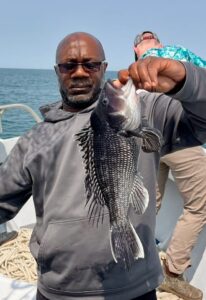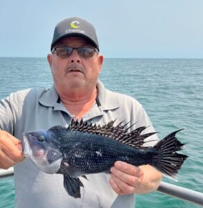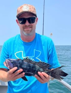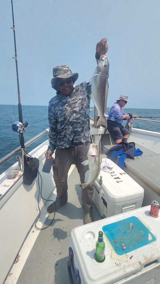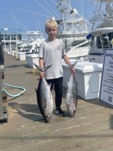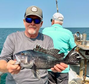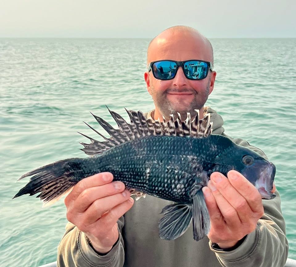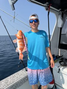 Captain Chase Eberle of Chasin’ Tides Charters had a nice day in the deep for his crew today putting them on a tuna, some black belly rosefish, some golden tilefish and some big sea bass.