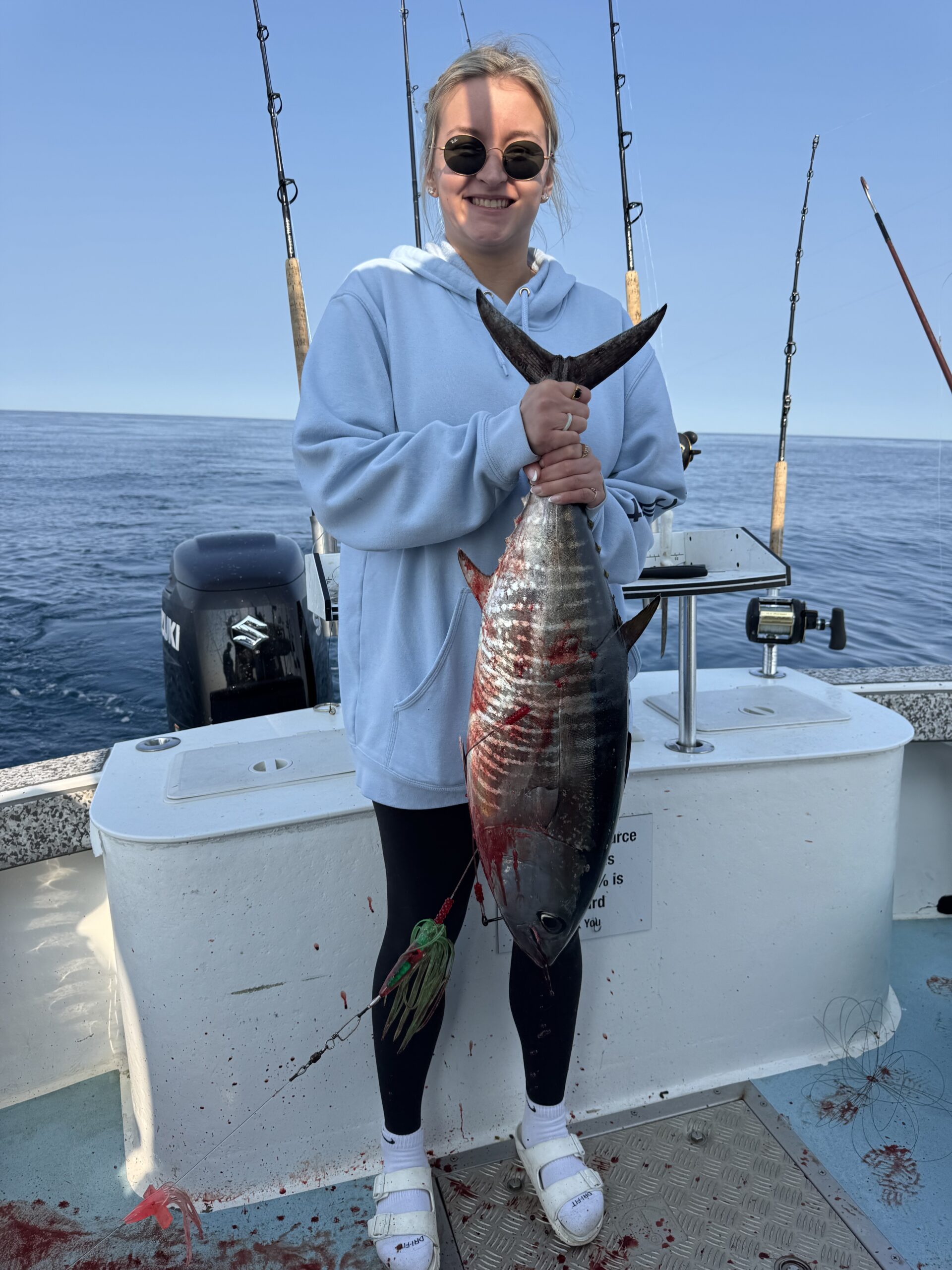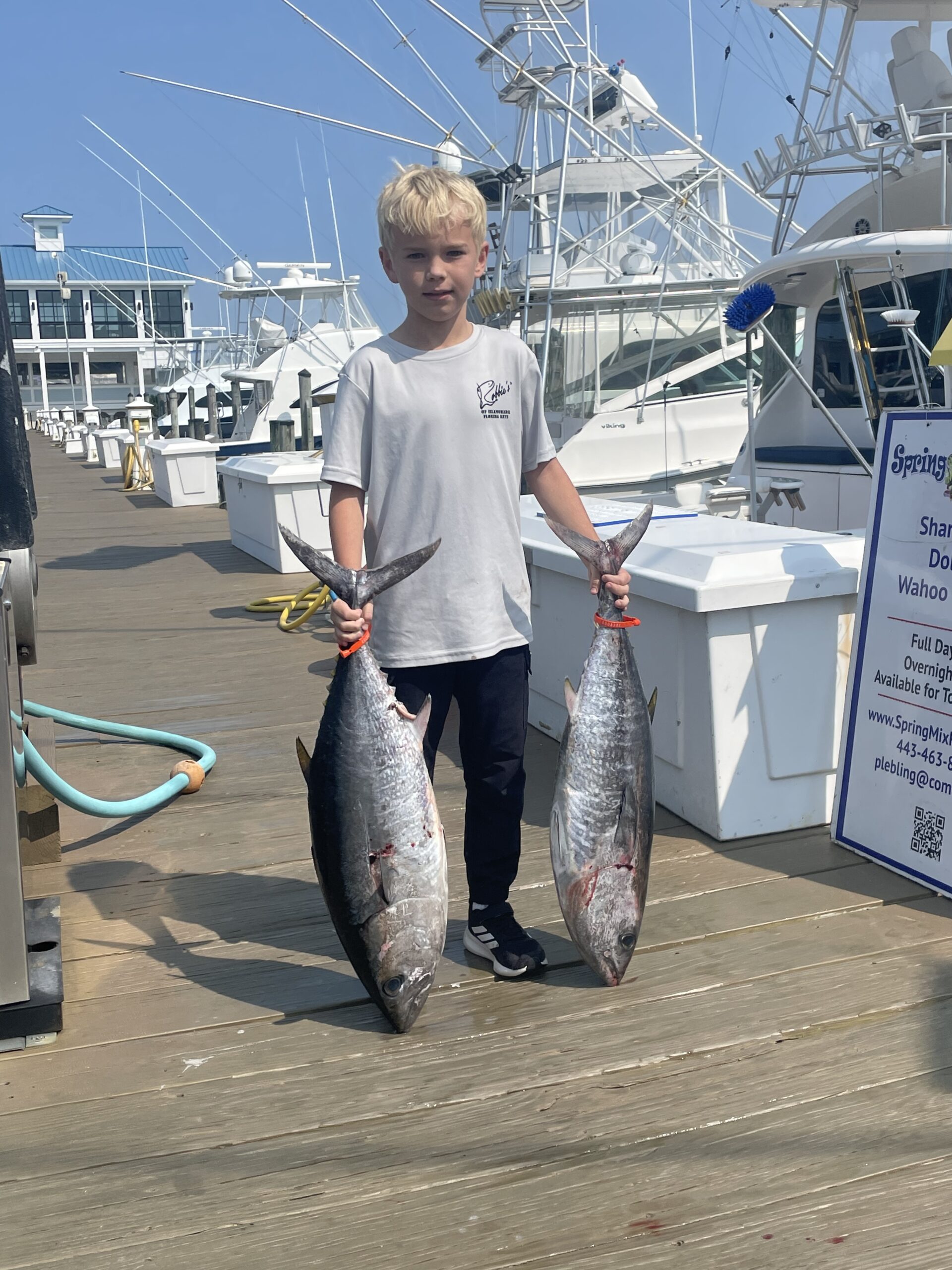 The crew of the Spring Mix II with Captain Chris Watkowski, mate Ben Harding and anglers Ron Keller, Robbie Paquette, Noah Lebling and Paul Lebling had their first trip of the season and it was a successful one. The crew had two bluefin tuna for the fish box and one more that was released.