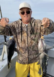 Captain Monty Hawkins of the Morning Star found the ocean a little less welcoming than expected this morning, but by afternoon it had calmed down nicely and there were plenty of fish in coolers.