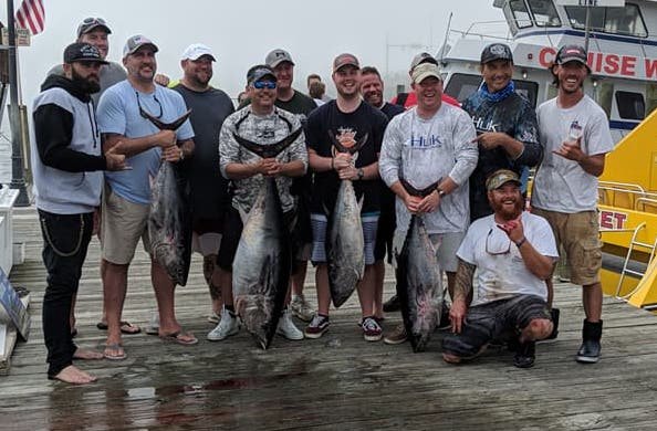 The Restless Lady II out of the Talbot Street Pier was out in 30 fathoms today with a bachelor party and were able to put the guys on some meat. Captain Ed Kauffman and mate Bryan Hazard put the crew on three under bluefins and one over bluefin while also releasing another 15 bluefins. They were able to do this in short time too returning to the dock by 2:30 this afternoon.