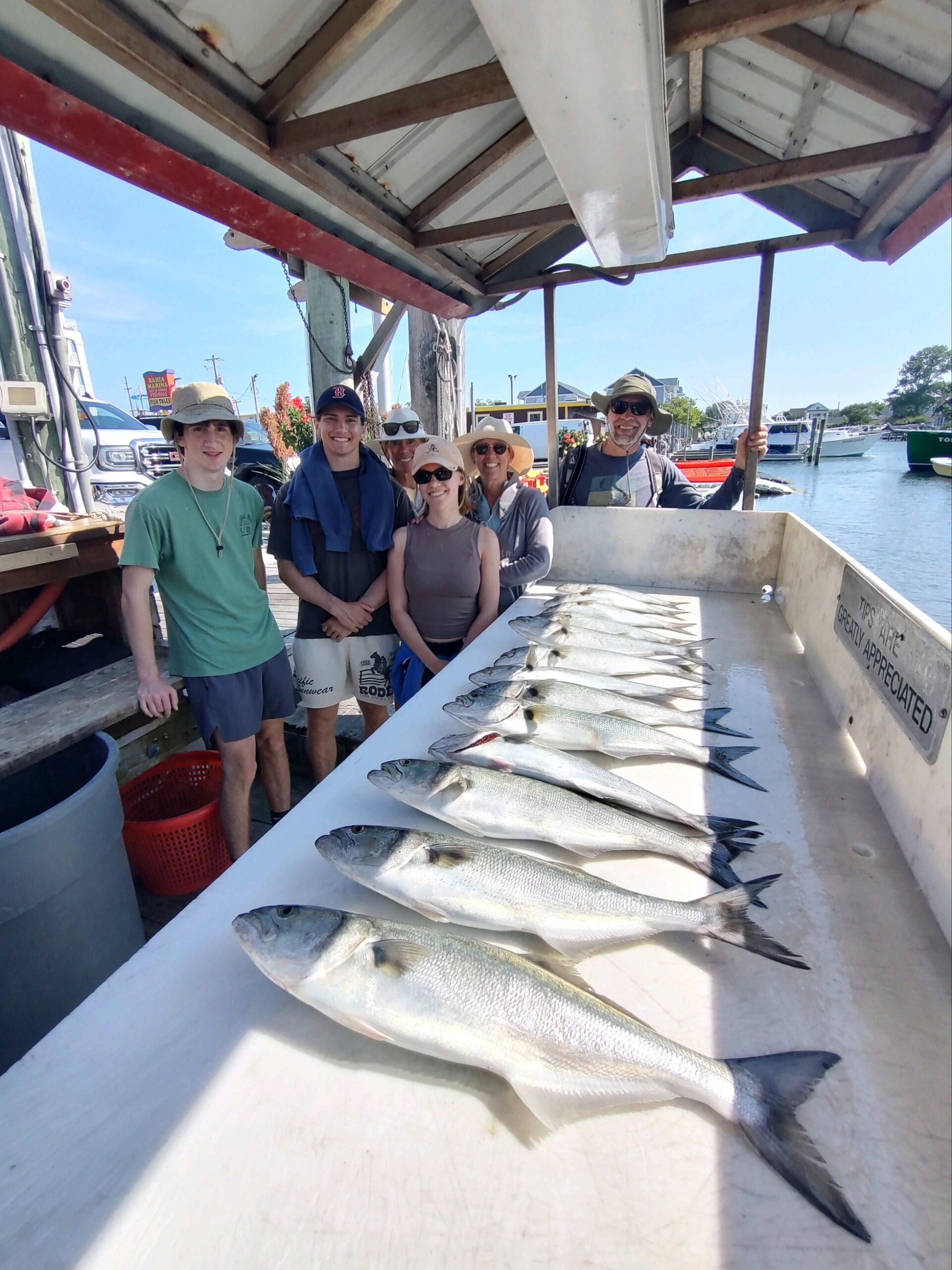 Anglers fishing with Captain Tony Battista on board Saltwater Adventures had a nice morning with a bunch of bluefish for the fish cleaners at Bahia Marina.