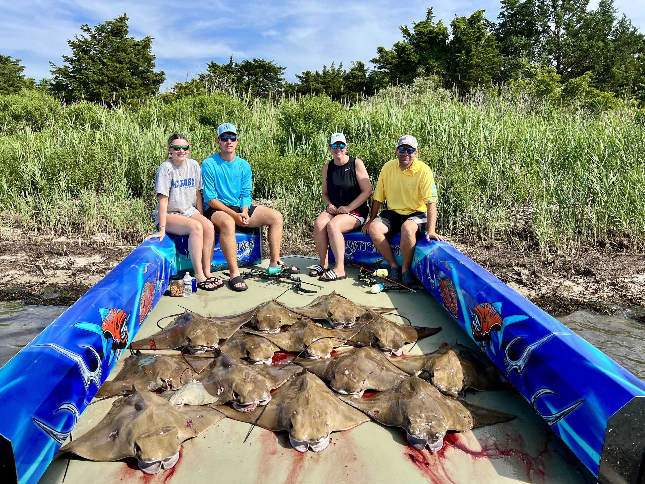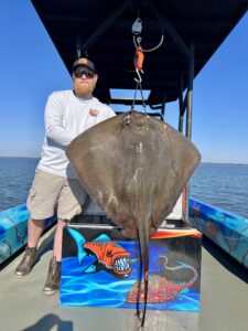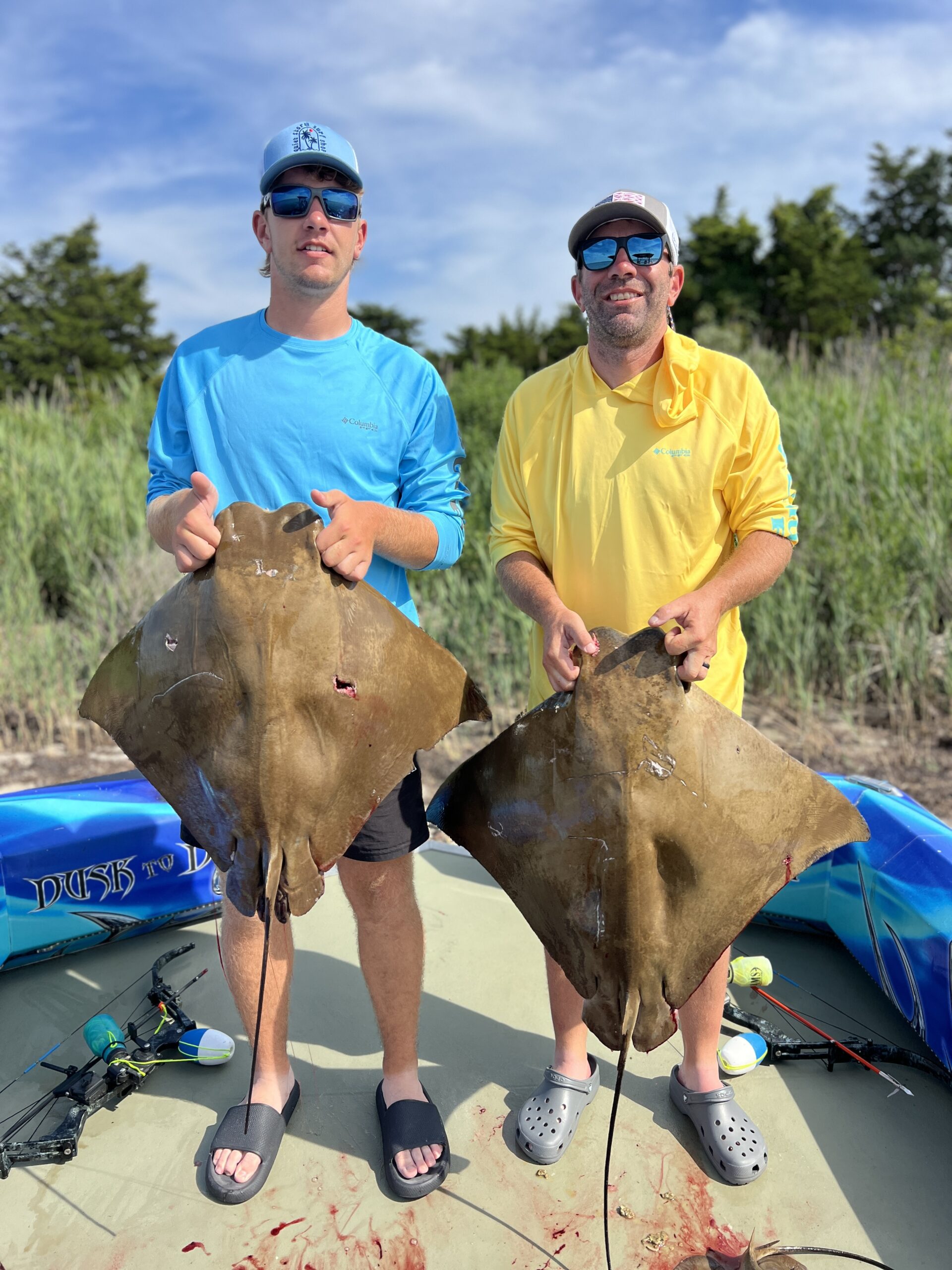 Captain Marc Spagnola of Dusk to Dawn Bowfishing got his trips in today before the storms and his clients saw some awesome shooting for cow nosed rays and big southerns.