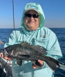 Ah, today’s catching was about normal; best of it midday. Some were doing well right out of the gate, others not as well but OK at least. One angler, however, and I’ll randomly call him “Stogie Joe,” was certainly having his turn in the penalty box. Though first to limit on a recent trip, our intrepid angler went 42 throwbacks before boxing his first keeper today.