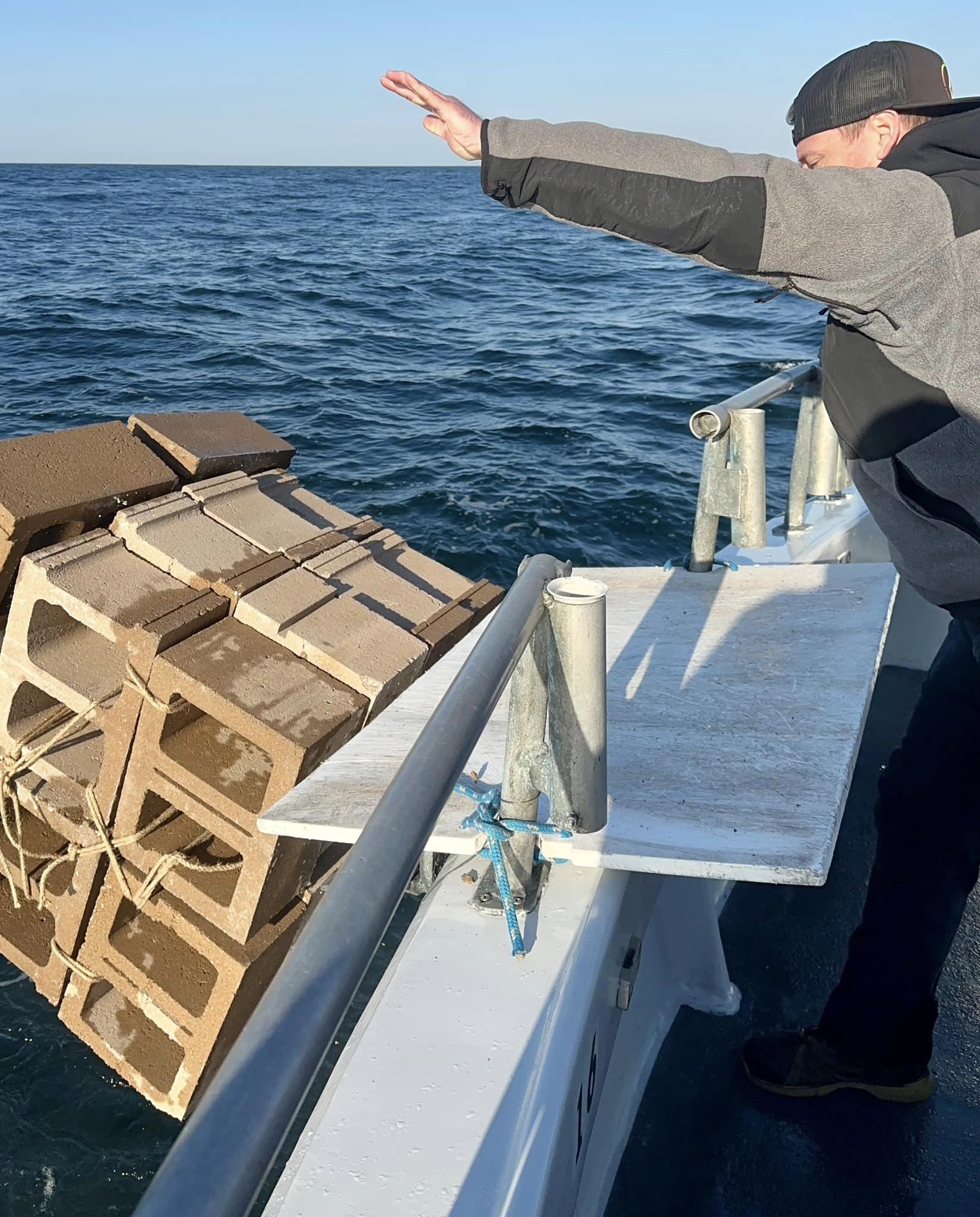Brett launched today’s reef blocks off the stern down onto Rambler Reef 80-some feet below.