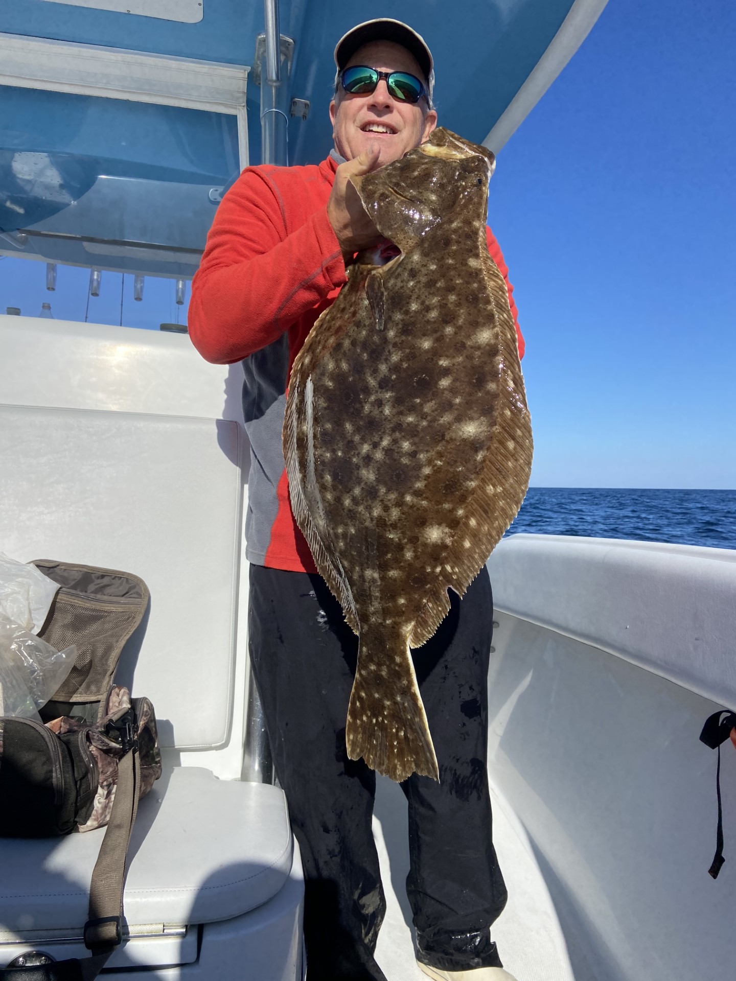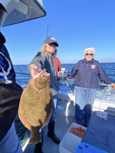 John Russell was fishing with Steve Schad today in 90 feet of water using a 3 ounce bucktail with a bluefish strip when he locked into this beautiful 32″, 12 pound 6 ounce flounder. They also had a limit of sea bass and 5 other keeper flounder.