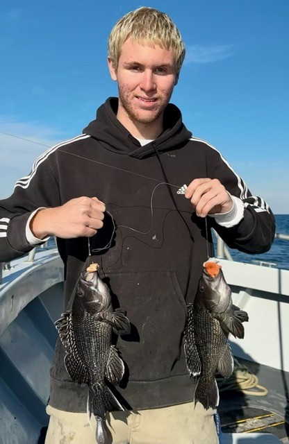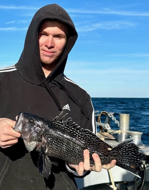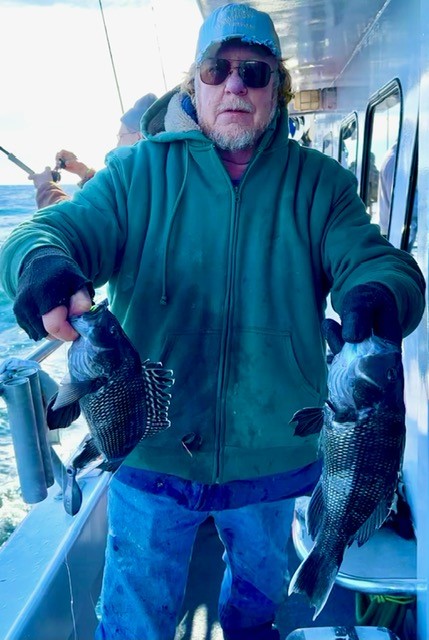 Captain Monty Hawkins of the Morning Star had a nice day on the rip today with a boat limit of sea bass for his folks.