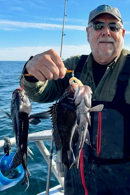 It was gorgeous today! It felt more like late September than early December and it was a great day to be on the water. I took some Deadly Tackle tog jigs to the south jetty and had some fun catching 10-12 tautog with one 16.5″ keeper and I saw several boats going to and coming from the ocean.