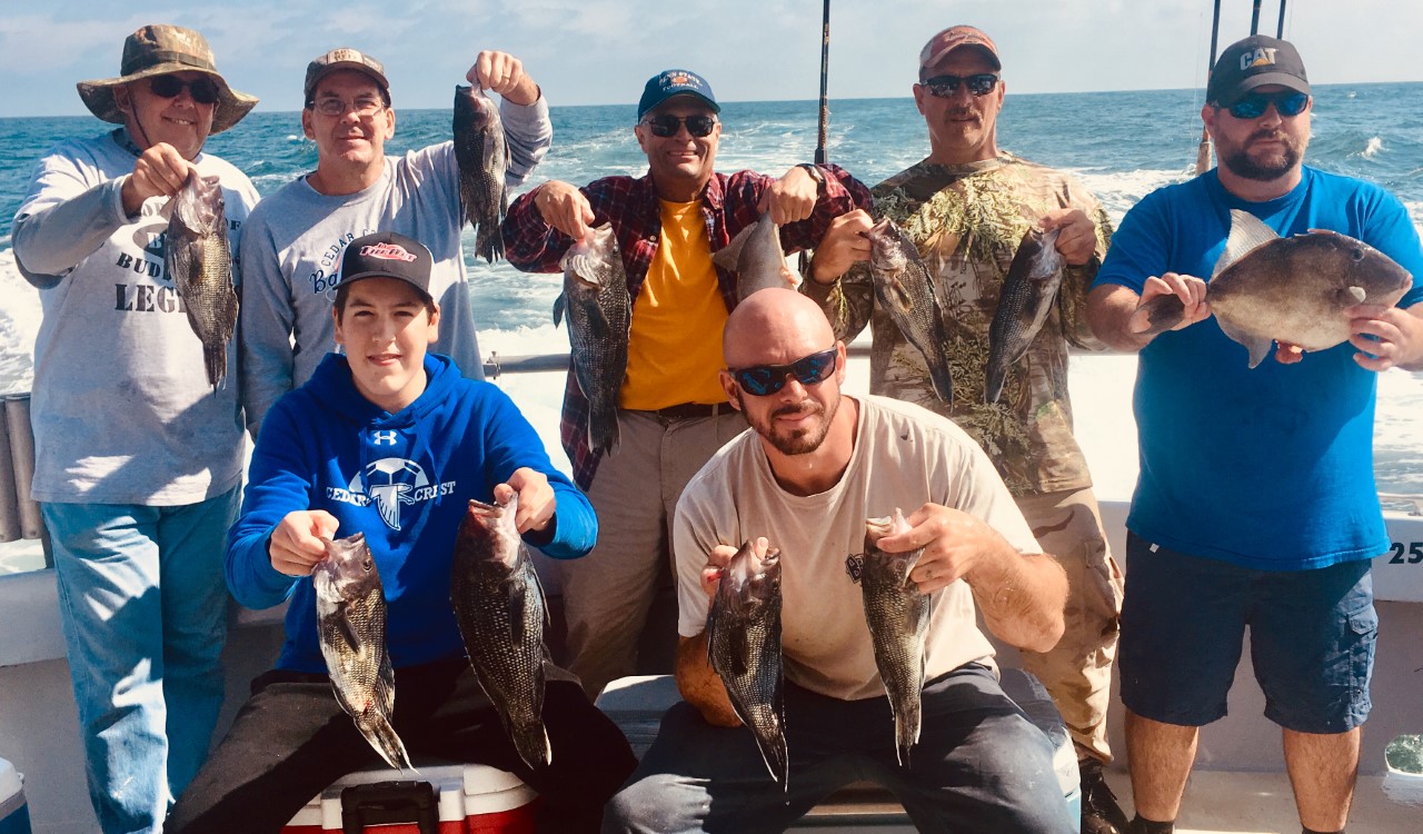 Before catching limits of cbass around the entire rail, we began the day dropping two 160 lb pyramid units and an 860 lb twelve chimney-block unit at Capt. Jack Kaeufer’s Memorial Reef. I’d imagine folks caught the heck out of triggers there this past summer. As ever, we dropped blocks & kept heading off.