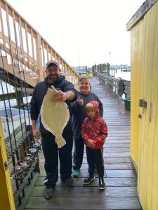 Matt from Fenwick Tackle sent this photo of Brian McCleaft who used a frozen shiner to land this beauty of a 23″ flounder at the Oceanic Pier this morning.