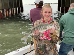 The route 50 bridge was a popular spot today with lots of flounder, striped bass and bluefish around. Captain Chase Eberle of Chasin’ Tides Charters was able to put his anglers on all three species on his trip to the bridge today.