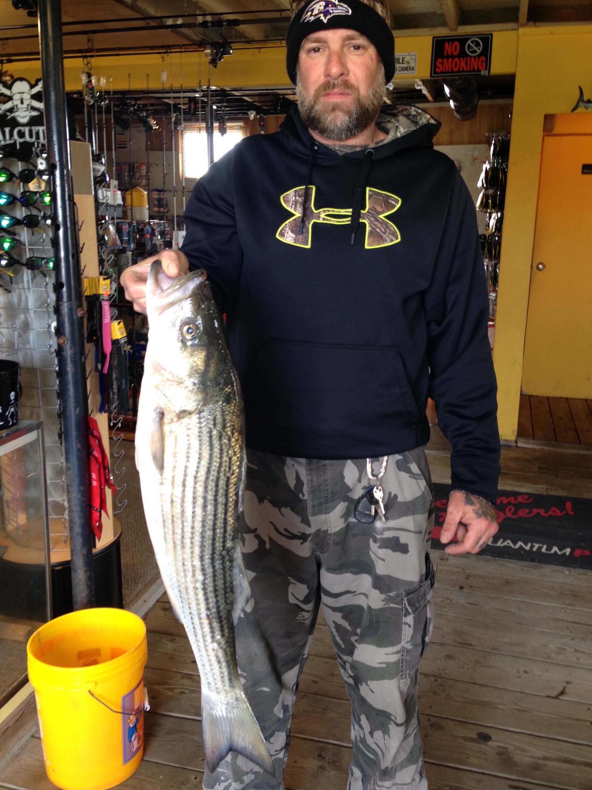 Bear at the Oceanic Pier submitted another photo of John from Baltimore who was on the route 50 bridge last night and caught this nice keeper sized rockfish on a Zoom artificial.
