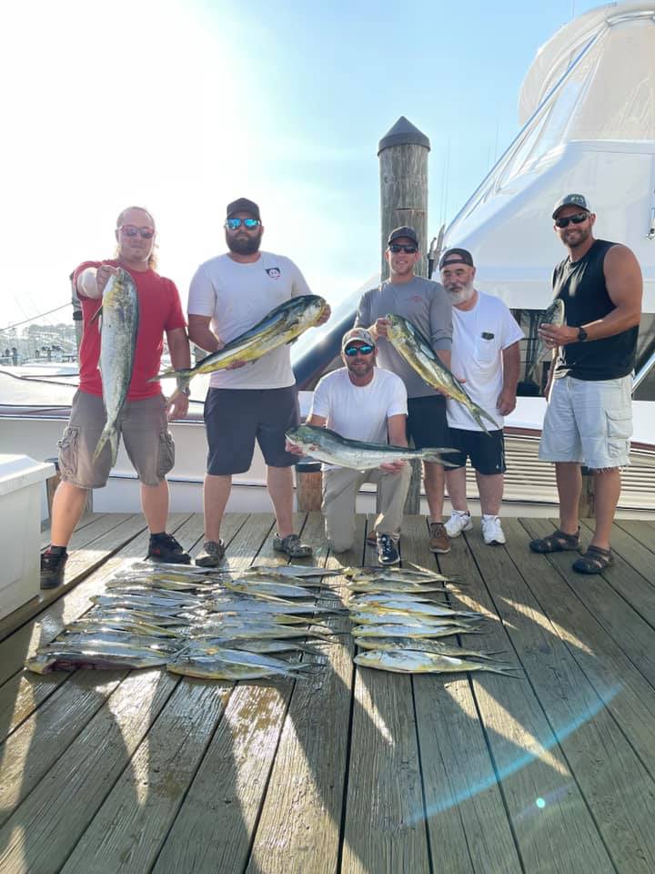 Emery and Ella Kavanagh, Nick and Liam Sturm, Charlie Oskin and Chris Kavanagh of East Coast Construction fished with Captain Tommy this morning and had a boat limit of mahi and were back to the dock in time for breakfast.
