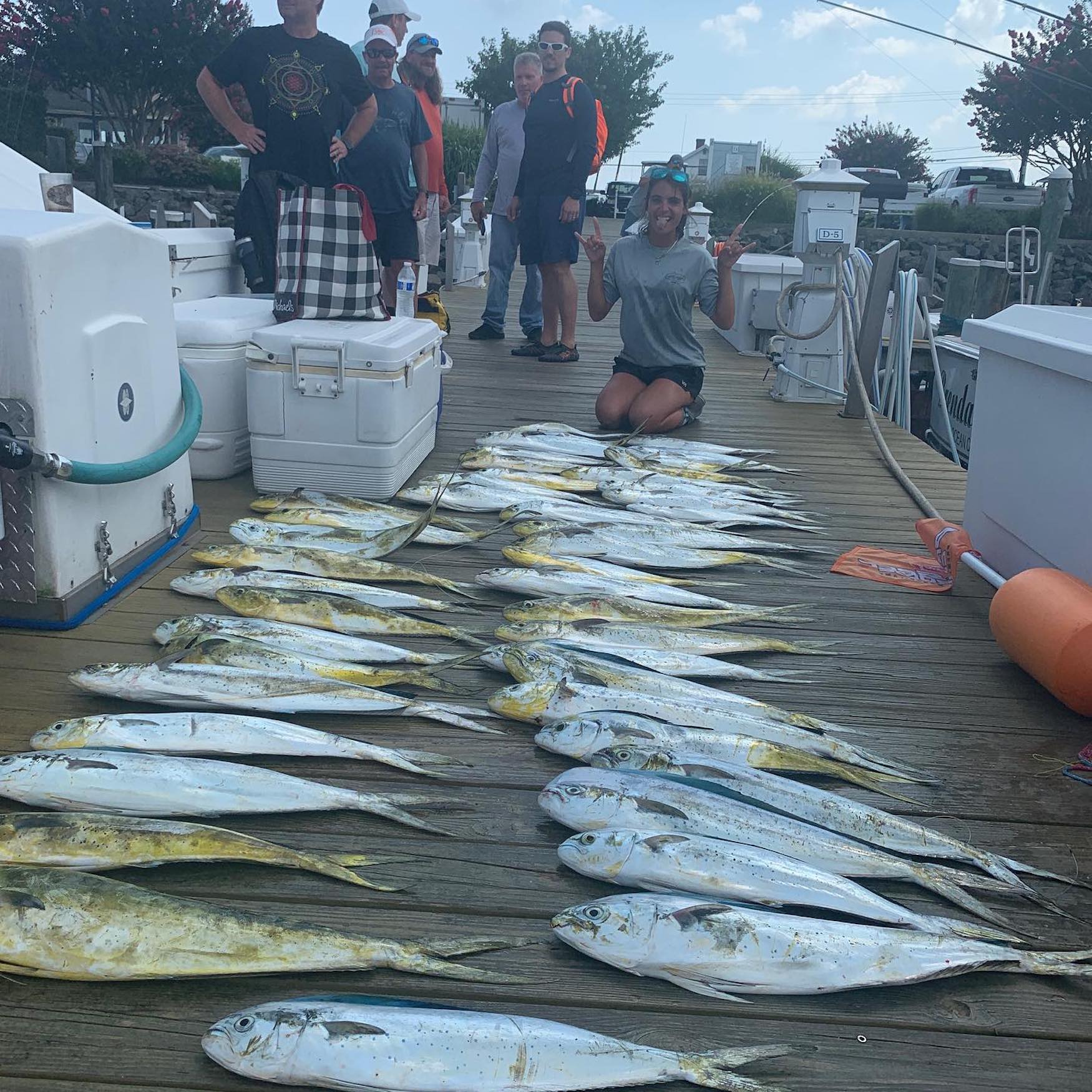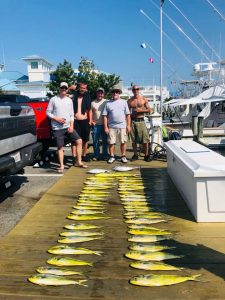 Captain Joe Drosey and his crew on Rhonda’s Osprey had a pile of mahi on the dock at Sunset Marina upon return from today’s trip.