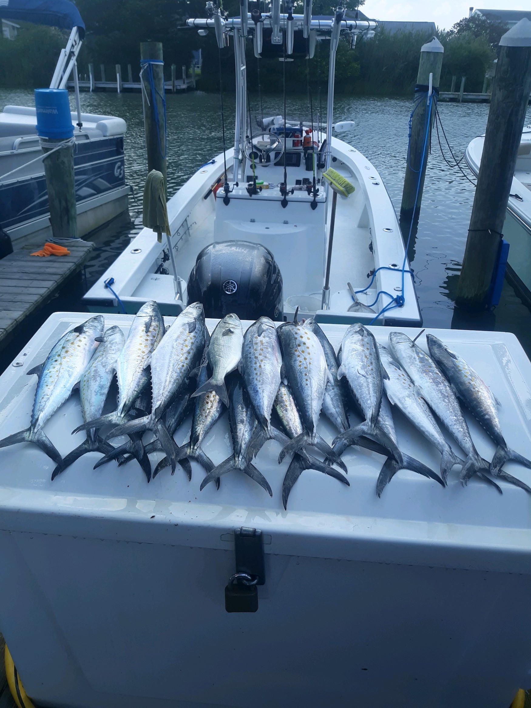 Captain Wayne Blanks of Bayside Guide Service had a nice day of inshore trolling this morning and put a nice catch of Spanish Mackerel in the box.