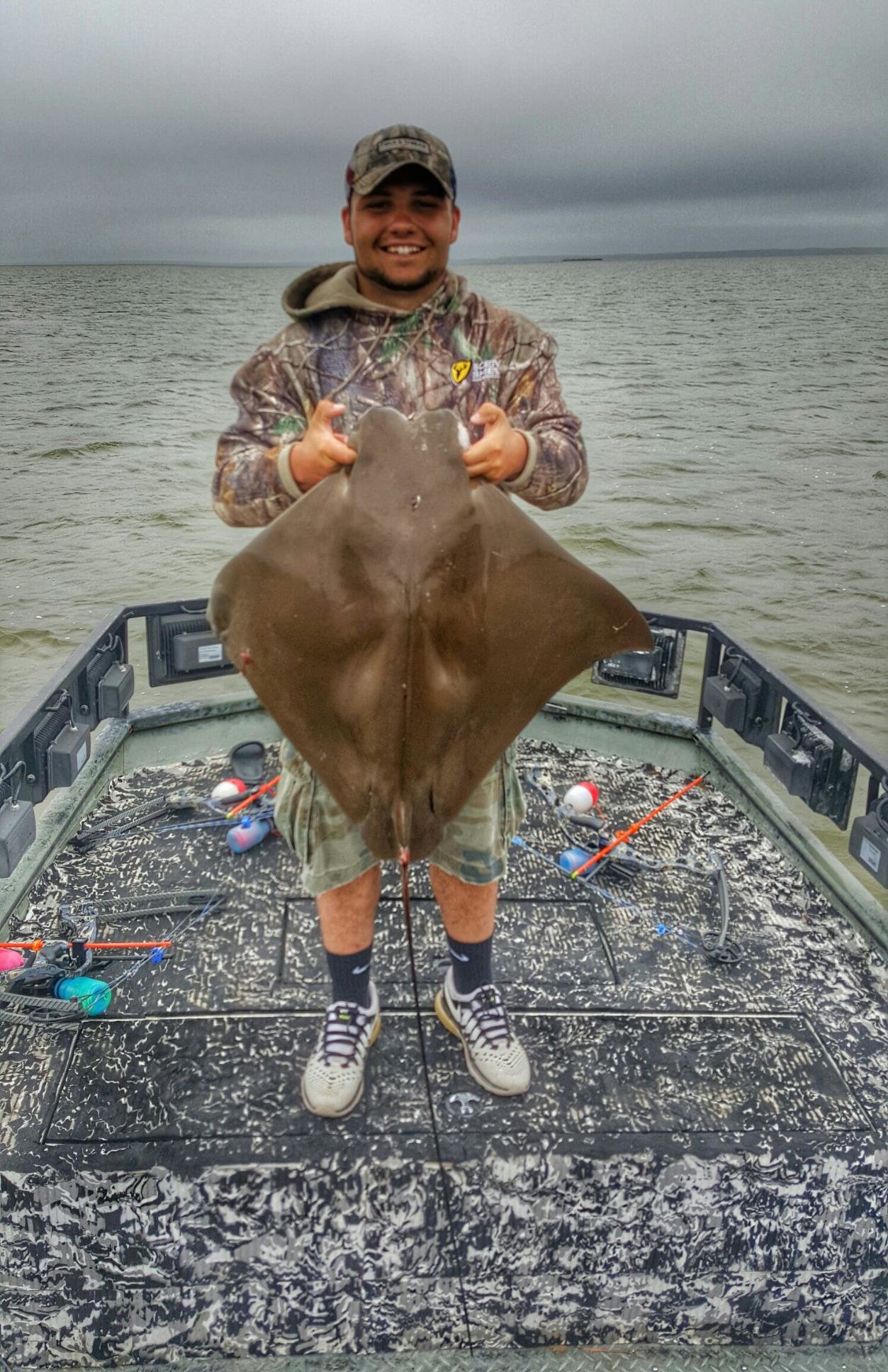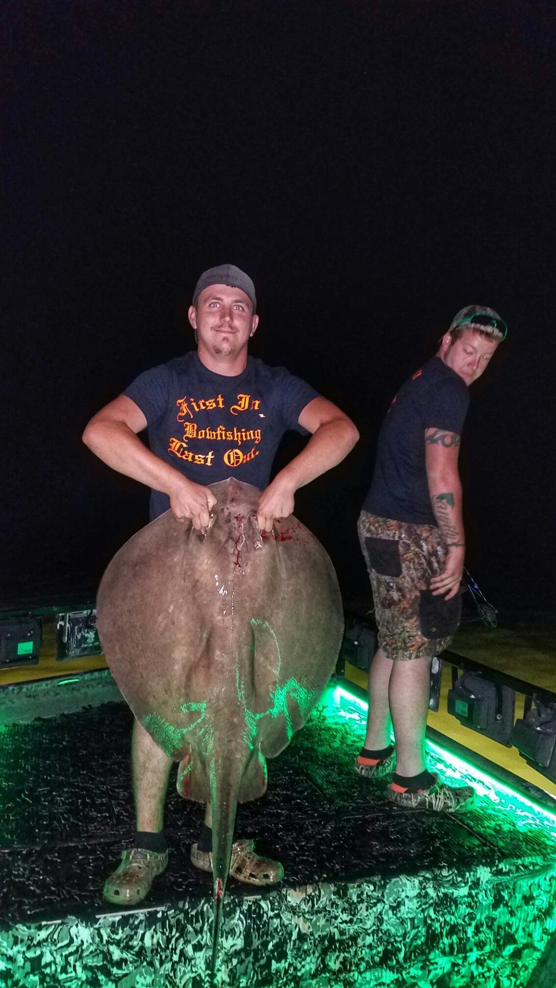 Captain Marc Spagnola on Dusk to Dawn Bowfishing is strictly bowfishing. Captain Marc has fished all over the area honing his craft and offers bowfishing trips day or night. Dusk to Dawn is perfectly rigged for bowfishing and is lit to put you on the fish at night. Captain Marc has been putting his shooters on some great fishing recently as well, including a nice 83 pound butterfly ray.
