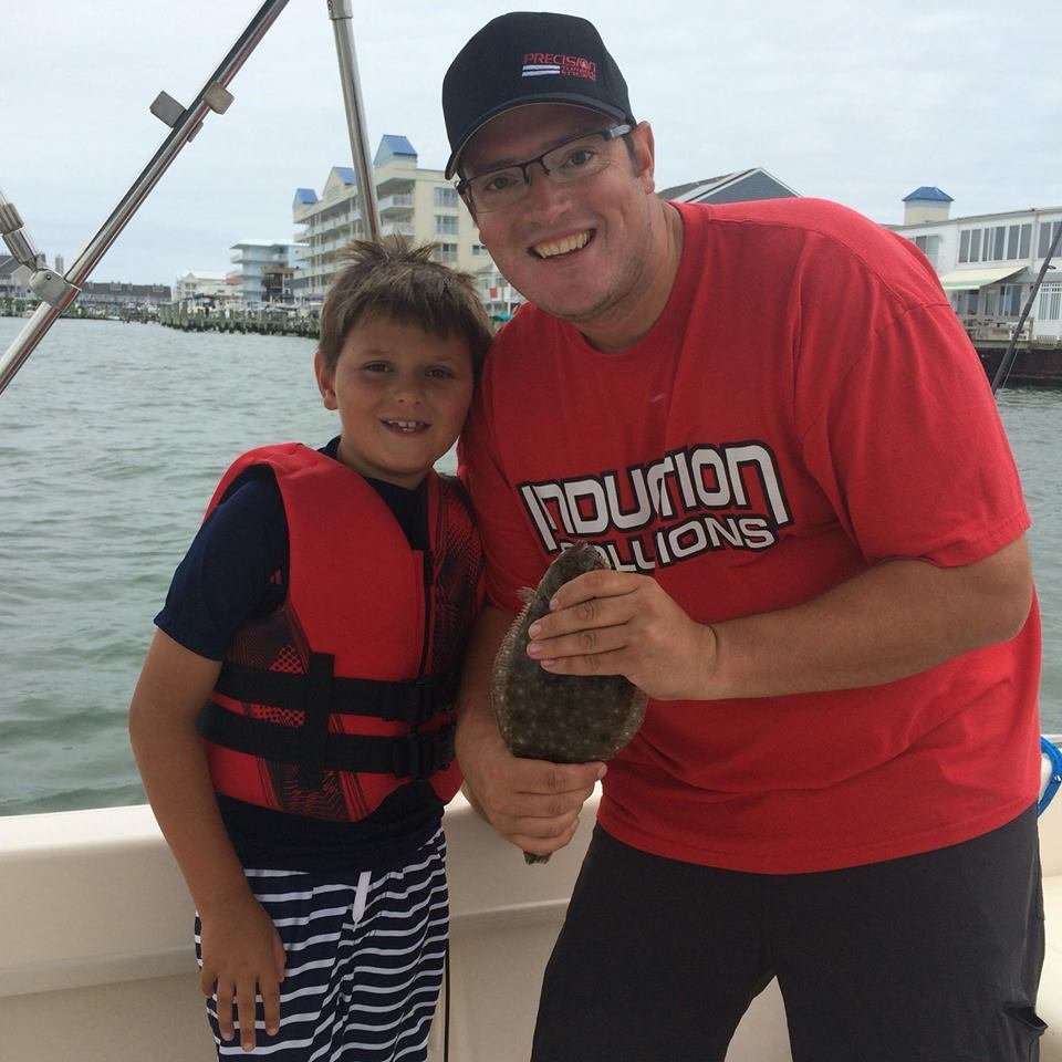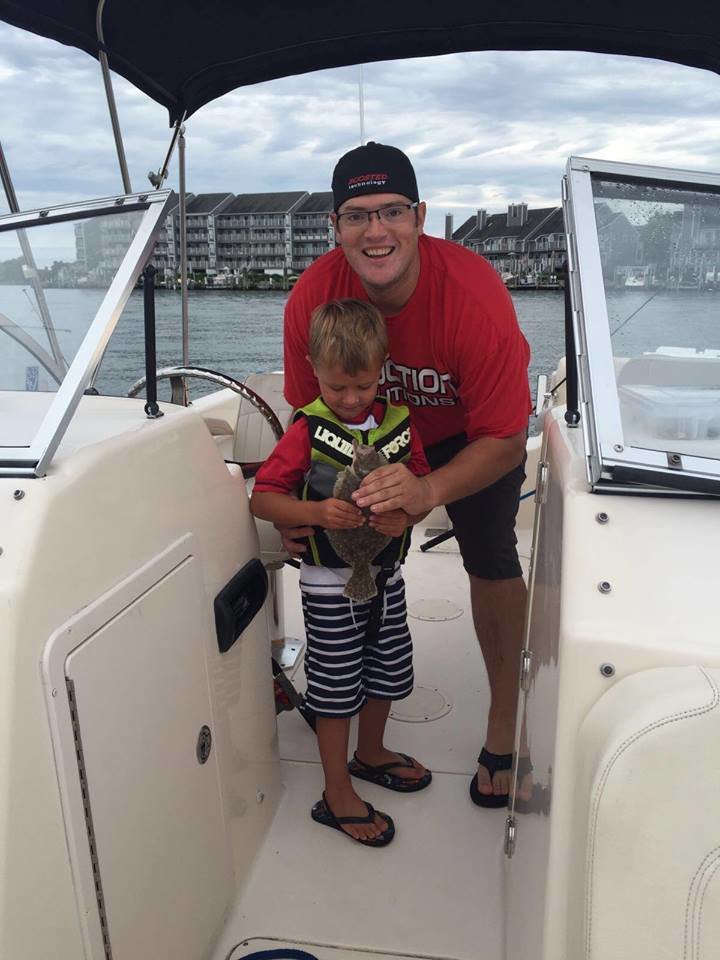 I got a great submission from Nate Pritchett yesterday. Nate fished offshore this Sunday with his neighbor Milan Lipensky and had a gaffer mahi and he fished inshore on Monday. Though they didn’t have any keepers, he put Jackson and Charlie on their first ever throwback flounder. Nate credits a lesson from Captain John Prather of Ocean City Guide Service for their success.