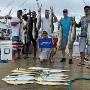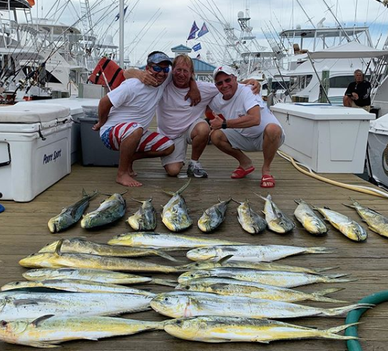 Captain Joe Drosey of Rhonda’s Osprey had a good day in the canyon today with a fun group. Captain Joe put his crew on a white marlin release and a nice pile of dolphin and he even got in on the photo op.