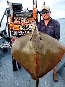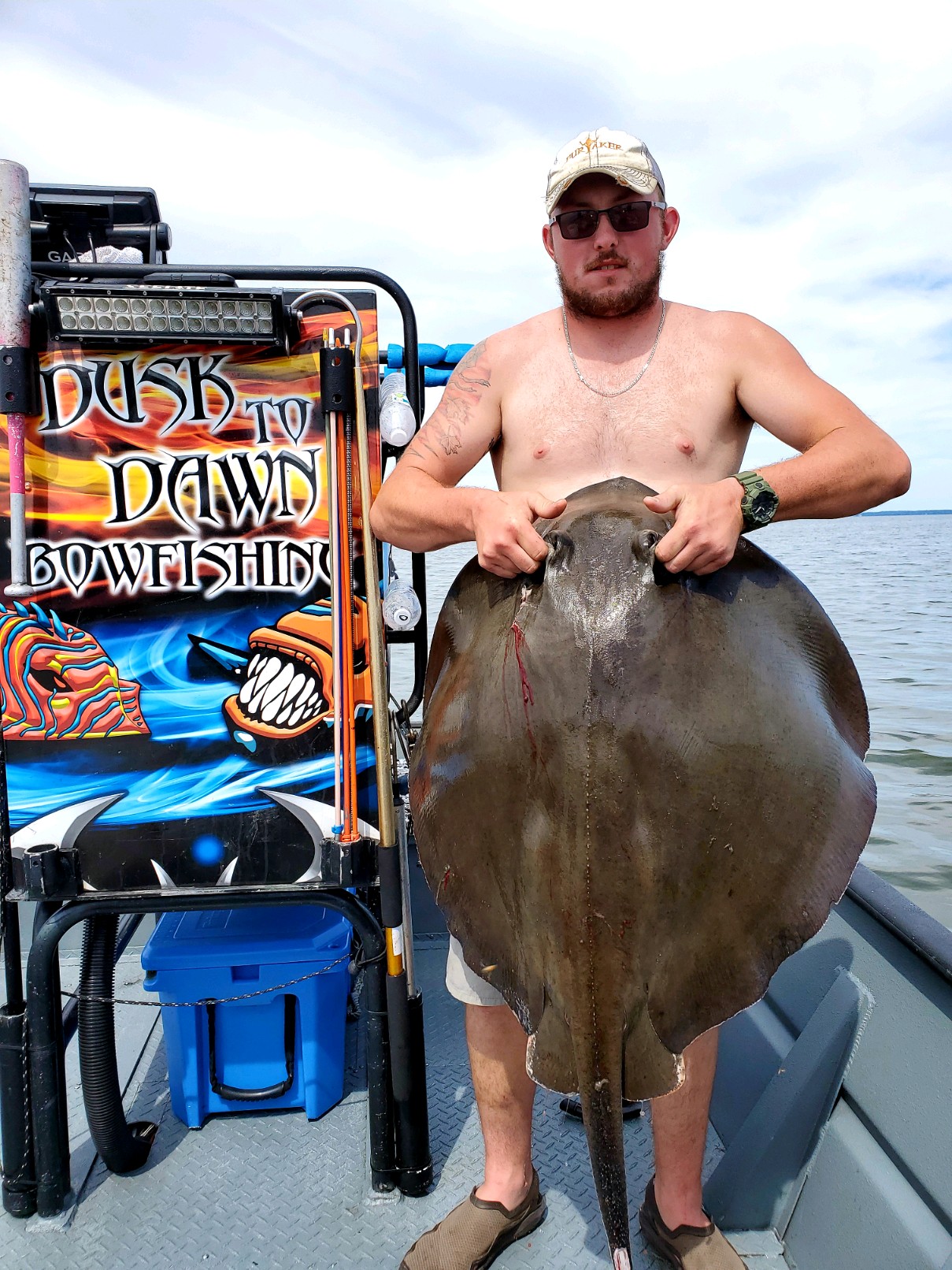 Captain Marc Spagnola of Dusk to Dawn Bowfishing found some more clean water today and put his shooters on some big souther rays in the south bay.
