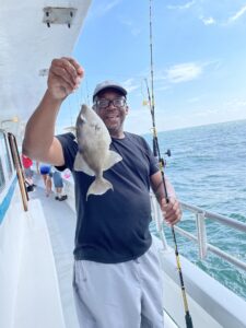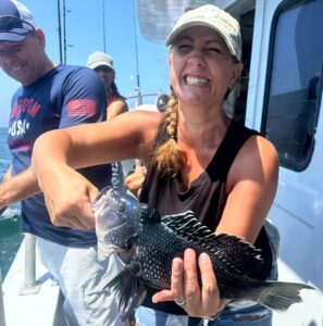 High hook was in double digits and never used a piece of bait all day – just jigged em. Special place in a partyboat owner’s heart for a client such as that! Chris from Alexandria boated today’s pool winner – a truly nice sea bass.