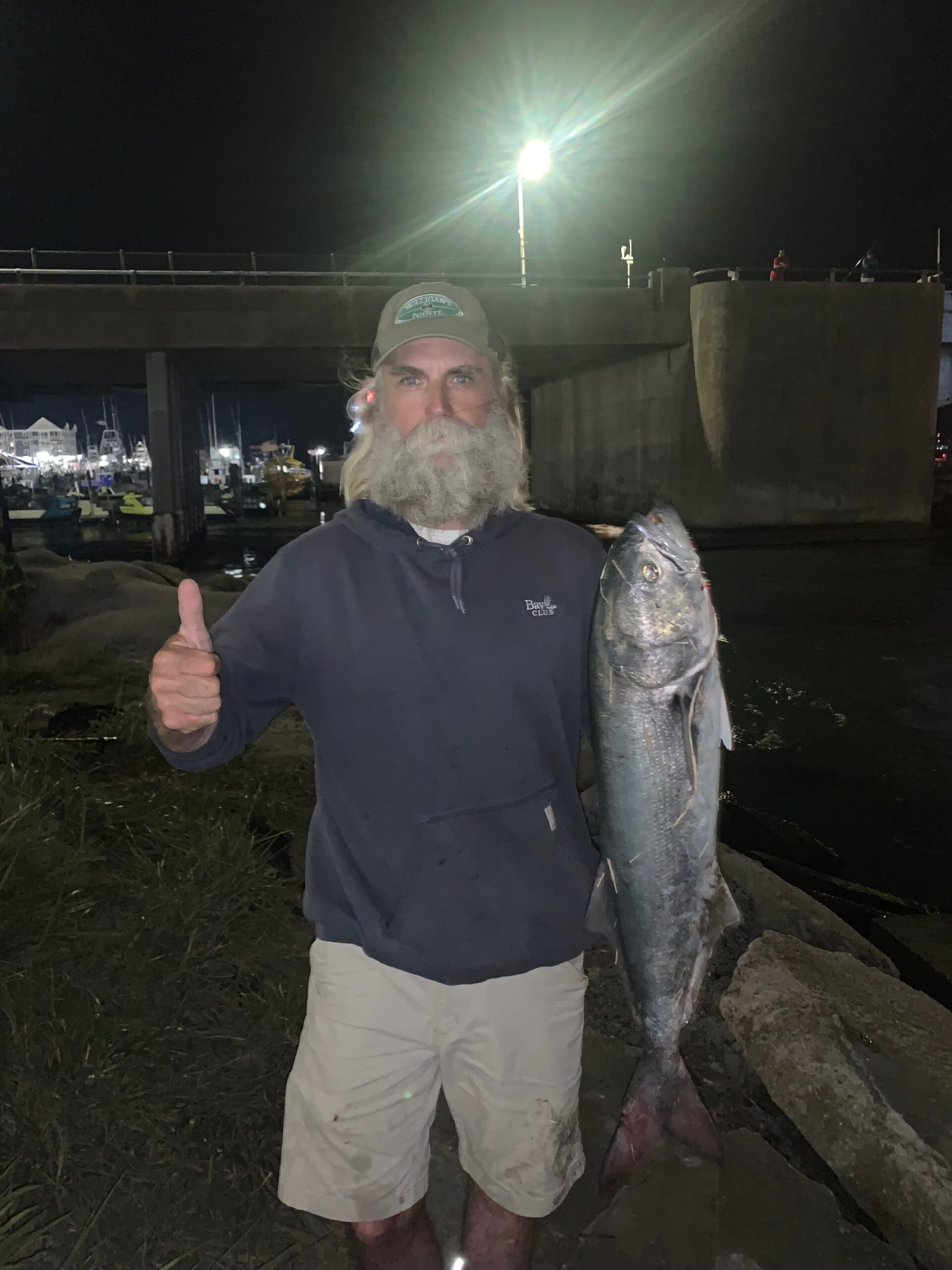 Speaking of the route 50 bridge, Shaun Flaherty fished there last night and landed this nice bluefish that was 33″.